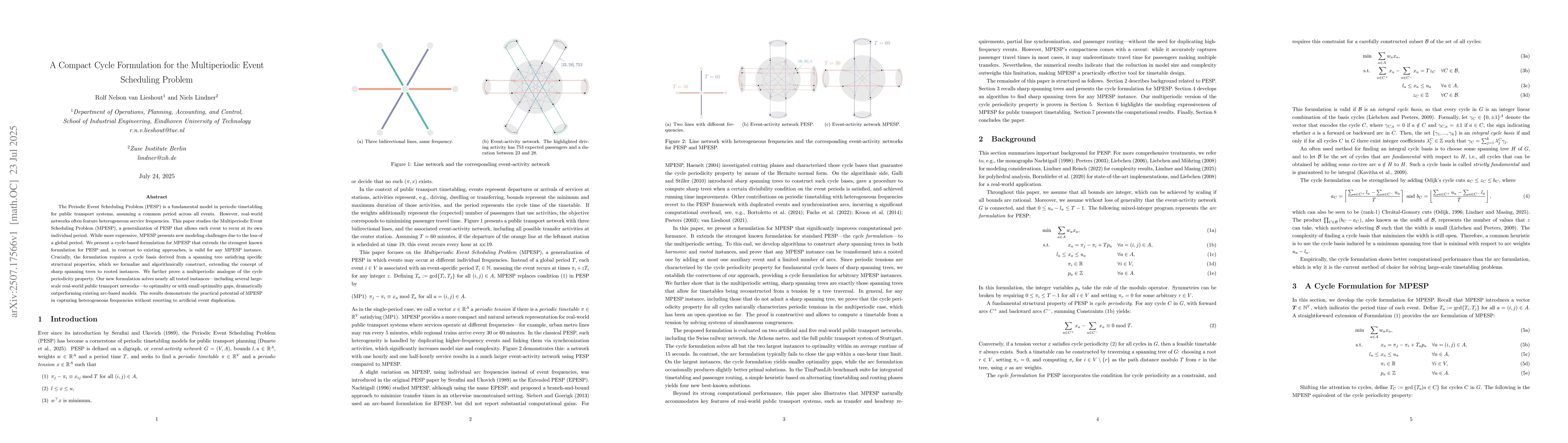 The paper presents a cycle-based formulation for the Multiperiodic Event Scheduling Problem (MPESP), extending the strongest known formulation for the Periodic Event Scheduling Problem (PESP). It introduces a cycle basis derived from a spanning tree with specific structural properties, applicable to any MPESP instance.