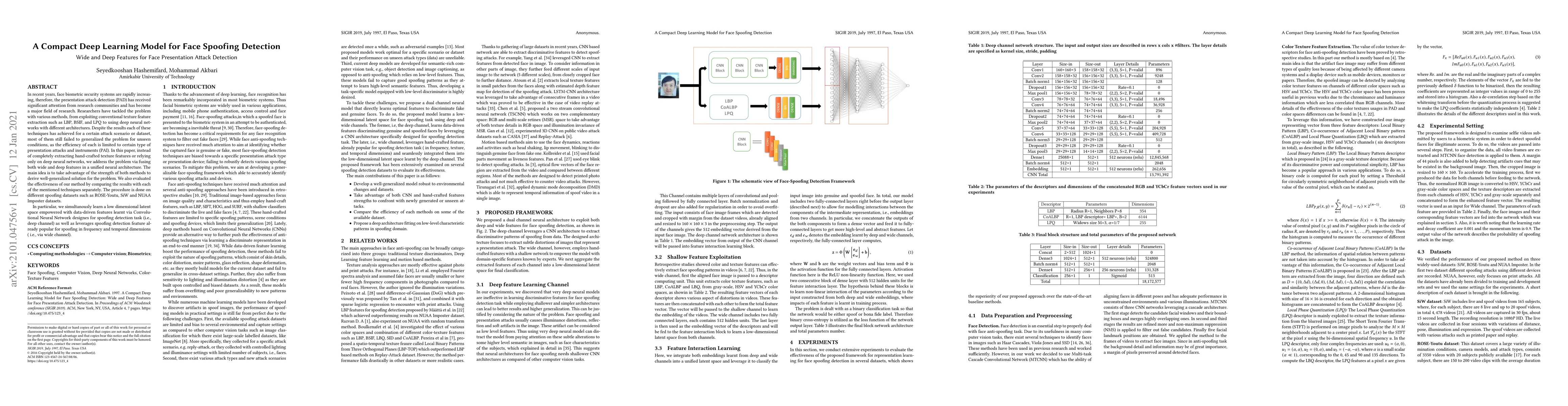 This paper presents a compact deep learning model that fuses both wide and deep features to enhance face spoofing detection. The proposed method combines Convolutional Neural Networks for data-driven features with traditional texture features to achieve a generalized solution, outperforming individual techniques on various datasets.