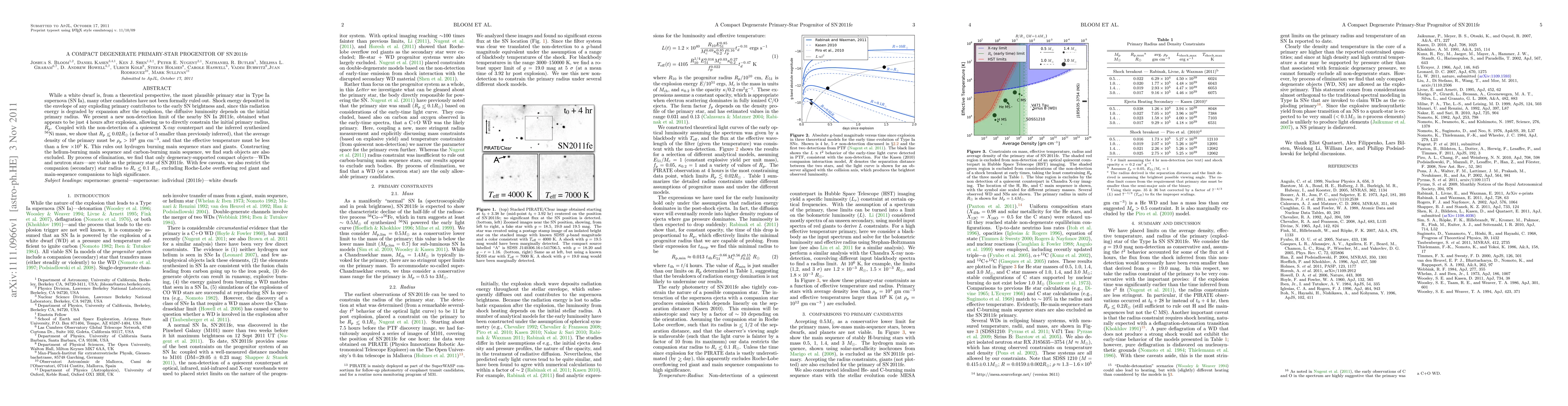 While a white dwarf is, from a theoretical perspective, the most plausible primary star in Type Ia supernova (SN Ia), many other candidates have not been formally ruled out. Shock energy deposited in the envelope of any exploding primary contributes to the early SN brightness and, since this radiation energy is degraded by expansion after the explosion, the diffusive luminosity depends on the initial primary radius. We present a new non-detection limit of the nearby SN Ia 2011fe, obtained what appears to be just 4 hours after explosion, allowing us to directly constrain the initial primary radius, R_p. Coupled with the non-detection of a quiescent X-ray counterpart and the inferred synthesized Ni mass, we show that R_p <~ 0.02 R_sun (a factor of 5 smaller than previously inferred), that the average density of the primary must be rho_p > 10,000 gm cm^{-3}, and that the effective temperature must be less than a few x 10^5 K. This rules out hydrogen burning main sequence stars and giants. Constructing the helium-burning main sequence and carbon-burning main sequence, we find such objects are also excluded. By process of elimination, we find that only degeneracy-supported compact objects---WDs and neutron stars---are viable as the primary star of SN 2011fe. With few caveats, we also restrict the companion (secondary) star radius to R_ c <~ 0.1 R_sun, excluding Roche-Lobe overflowing red giant and main-sequence companions to high significance.
