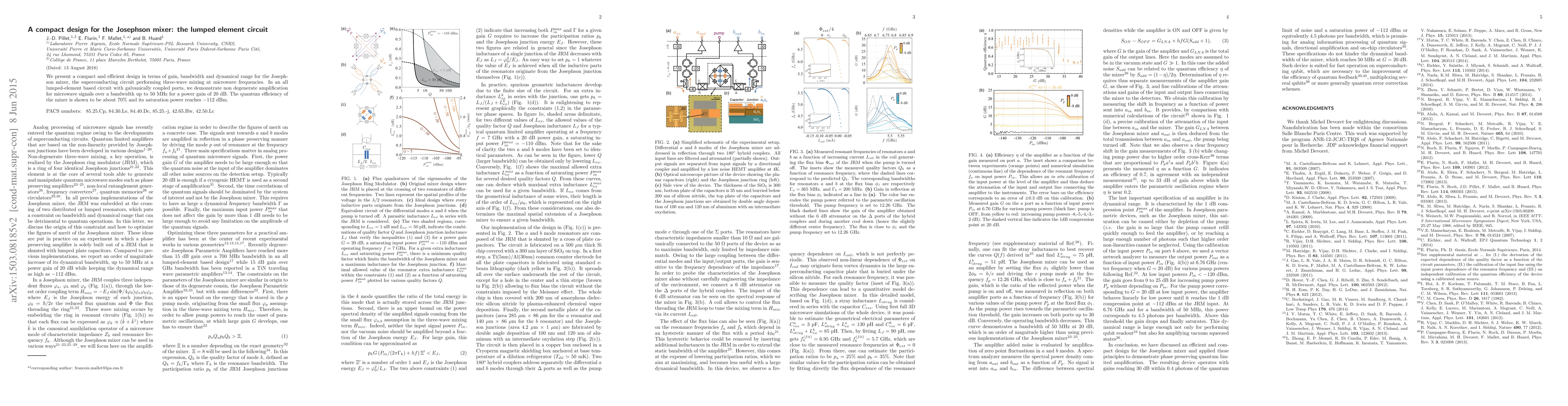 Researchers have designed a compact Josephson mixer circuit with high gain, bandwidth, and efficiency, achieving 70% quantum efficiency and 20 dB power gain over 50 MHz frequency range.