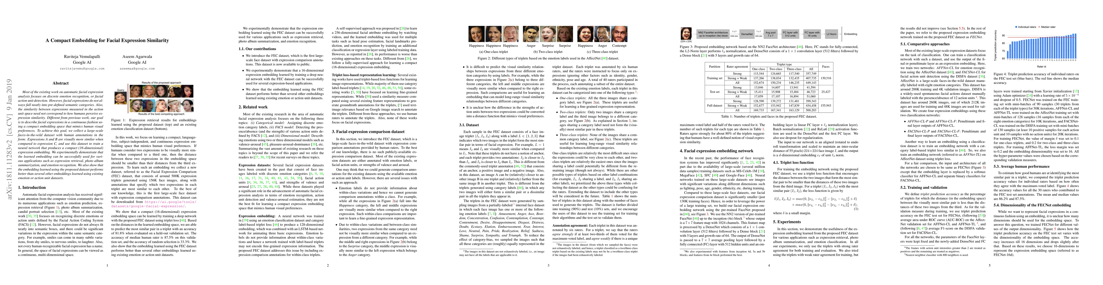 This research introduces a compact 16-dimensional facial expression embedding, learned from a large dataset of faces-in-the-wild with human similarity annotations. The model outperforms others in applications like expression retrieval, album summarization, and emotion recognition, reflecting human visual preferences better than existing discrete approaches.
