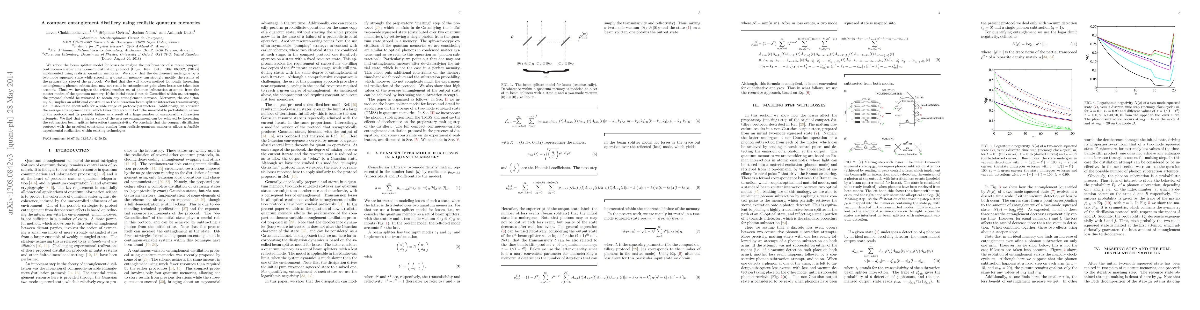 Researchers investigated a compact entanglement distillation protocol using realistic quantum memories, finding that decoherence can greatly impact the results and requiring constraints on the subtraction beam splitter interaction transmissivity to achieve feasible experimental realization.