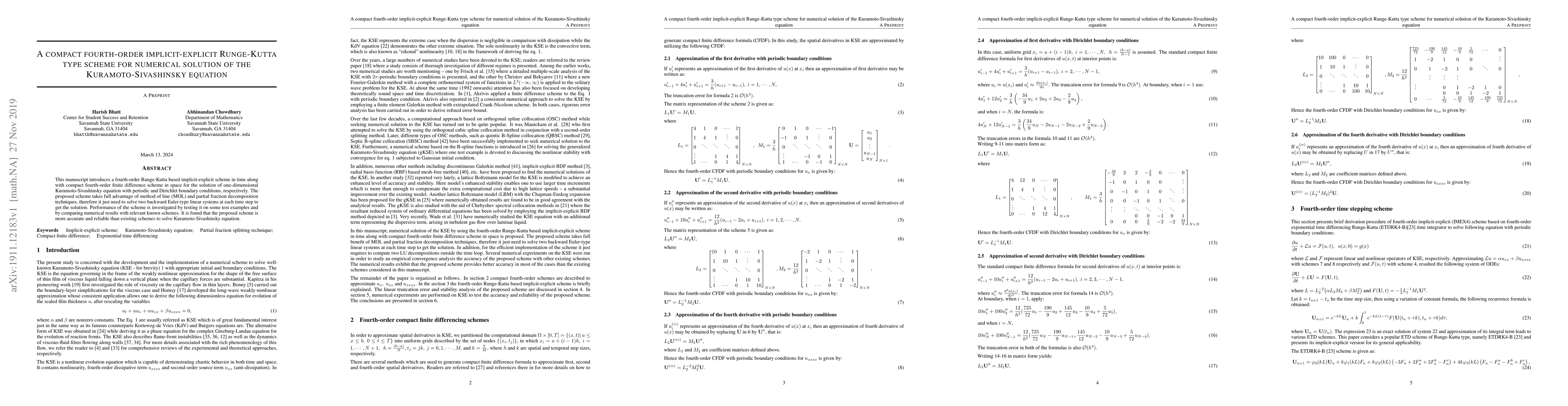 This manuscript introduces a fourth-order Runge-Kutta based implicit-explicit scheme in time along with compact fourth-order finite difference scheme in space for the solution of one-dimensional Kuramoto-Sivashinsky equation with periodic and Dirichlet boundary conditions, respectively. The proposed scheme takes full advantage of method of line (MOL) and partial fraction decomposition techniques, therefore it just need to solve two backward Euler-type linear systems at each time step to get the solution. Performance of the scheme is investigated by testing it on some test examples and by comparing numerical results with relevant known schemes. It is found that the proposed scheme is more accurate and reliable than existing schemes to solve Kuramoto-Sivashinsky equation.