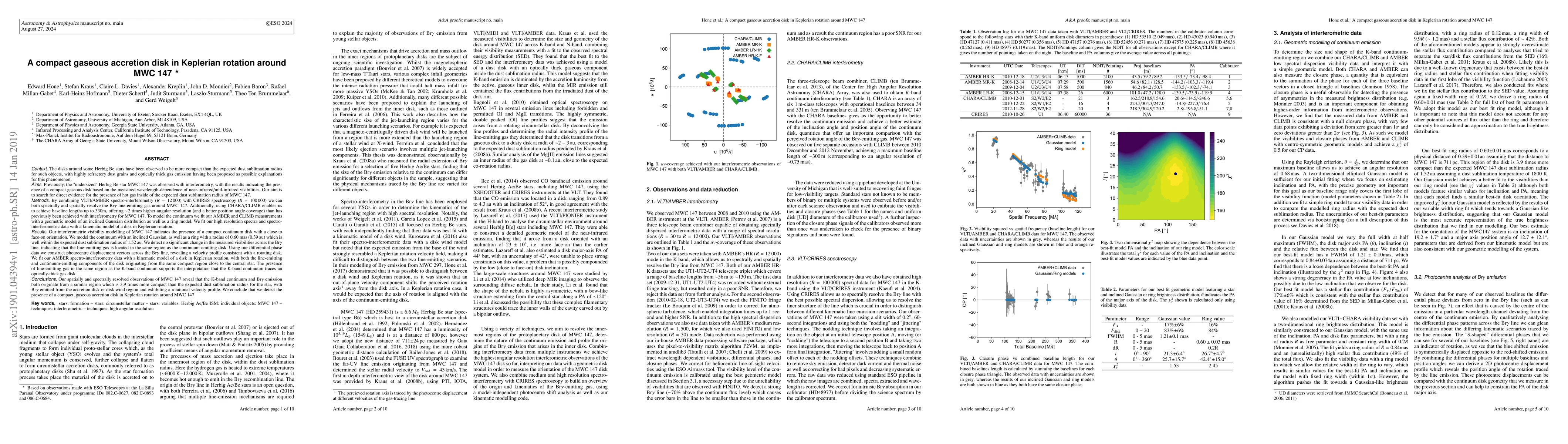 Astronomers detect a compact gaseous accretion disk around the star MWC147, contradicting expectations of dust sublimation radius.