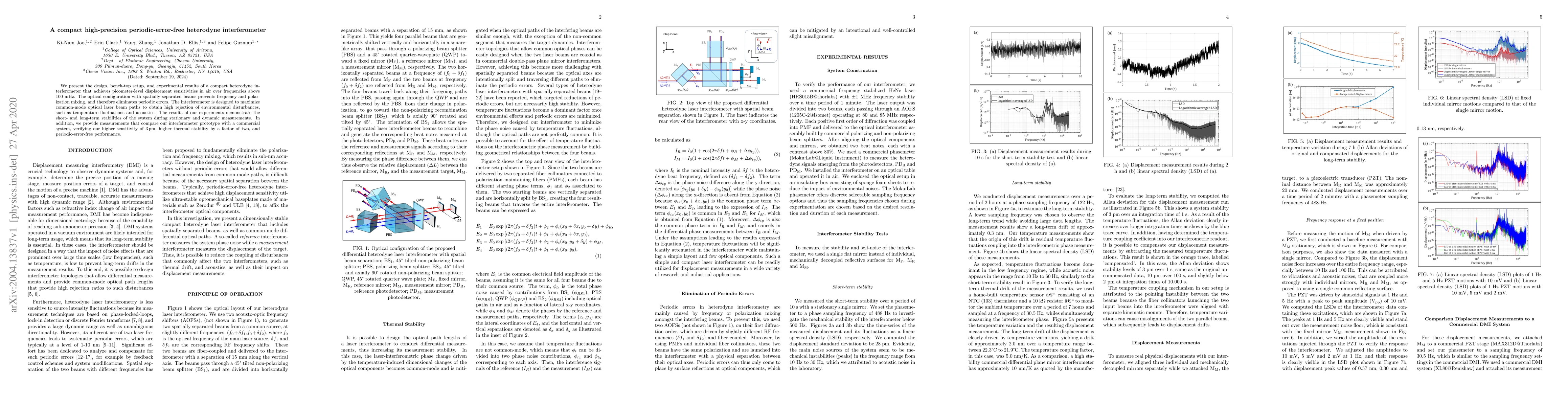 This paper details a compact, high-precision heterodyne interferometer achieving picometer-level displacement sensitivity, free from periodic errors, and demonstrating superior stability and sensitivity compared to commercial systems. The design features spatially separated beams to prevent mixing and maximizes common-mode paths for environmental disturbance rejection.