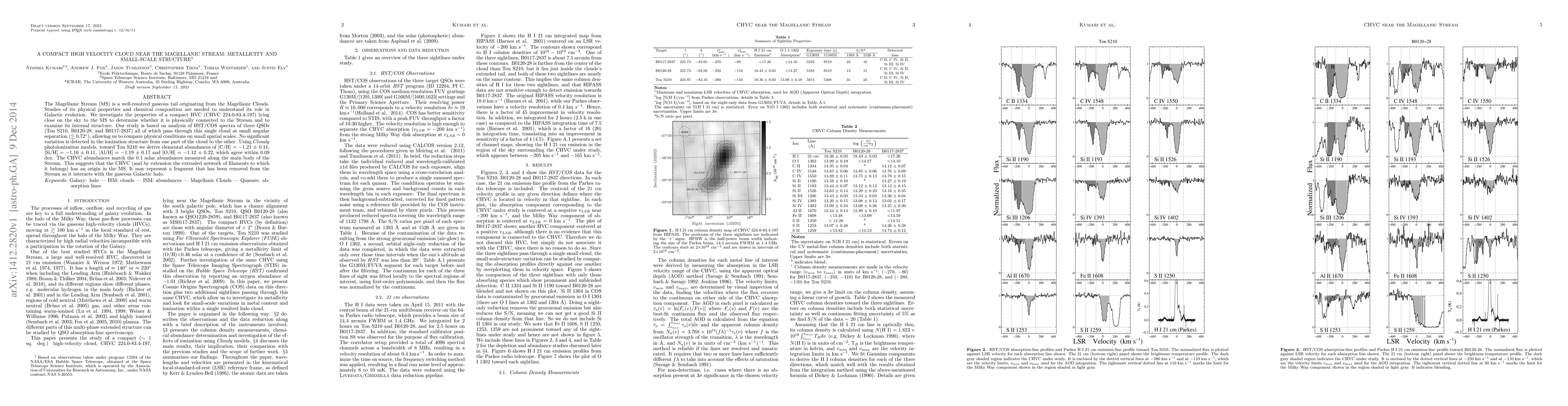 This study investigates a compact high velocity cloud (CHVC 224.0-83.4-197) near the Magellanic Stream, finding no significant variation in its ionization structure. The CHVC's elemental abundances match the 0.1 solar abundances of the Stream, suggesting a physical connection and indicating it may be a fragment from the Stream.