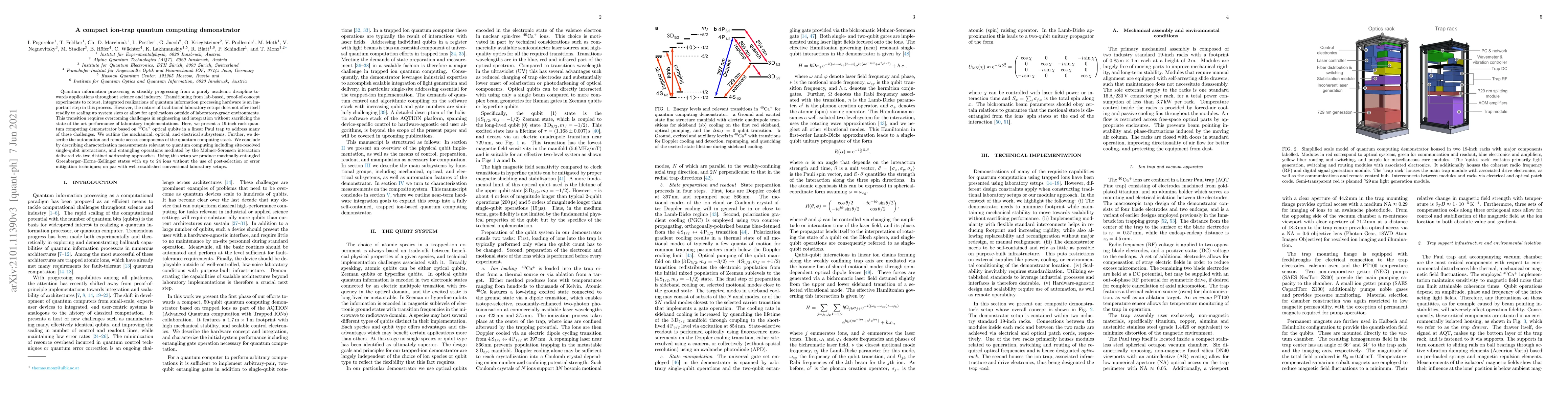 Researchers developed a compact quantum computing demonstrator that achieves 24 ions of maximally-entangled Greenberger-Horne-Zeilinger states without post-selection or error mitigation techniques, paving the way for scalable applications.