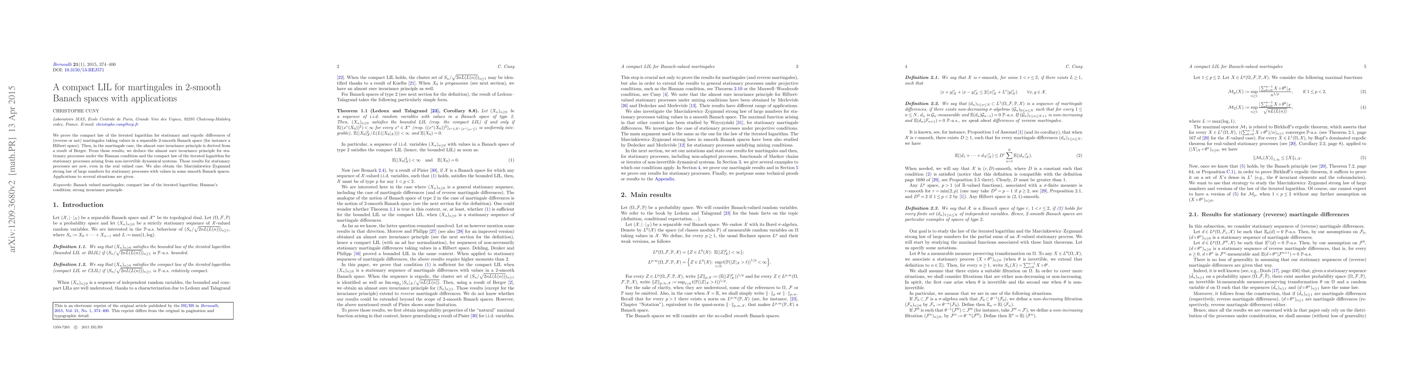 This paper proves the compact law of the iterated logarithm for martingales in 2-smooth Banach spaces and derives new results on the almost sure invariance principle and strong law of large numbers for stationary processes.