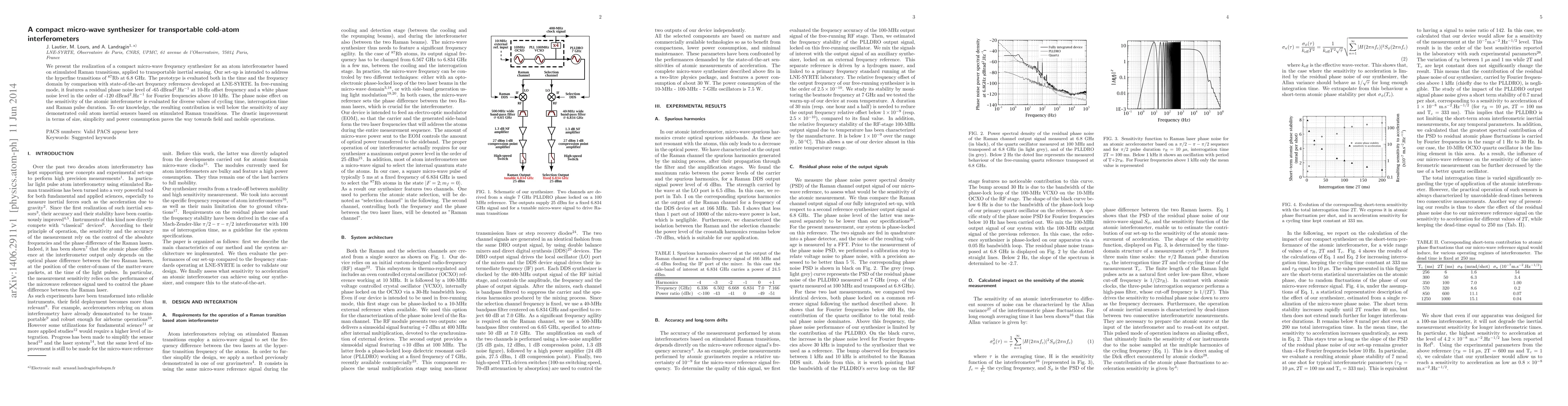 This paper details a compact microwave frequency synthesizer for transportable cold-atom interferometers, achieving a low residual phase noise level and high sensitivity, significantly improving the size, simplicity, and power consumption. The prototype outperforms existing cold atom inertial sensors, paving the way for field and mobile operations.