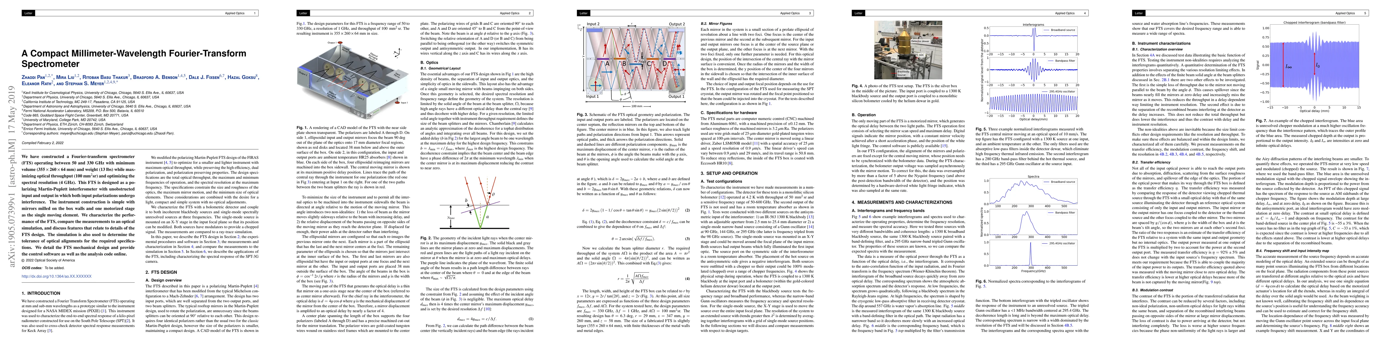 Researchers designed a compact Fourier-transform spectrometer operating at millimeter wavelengths with high optical throughput and spectral resolution, weighing only 13 lbs.