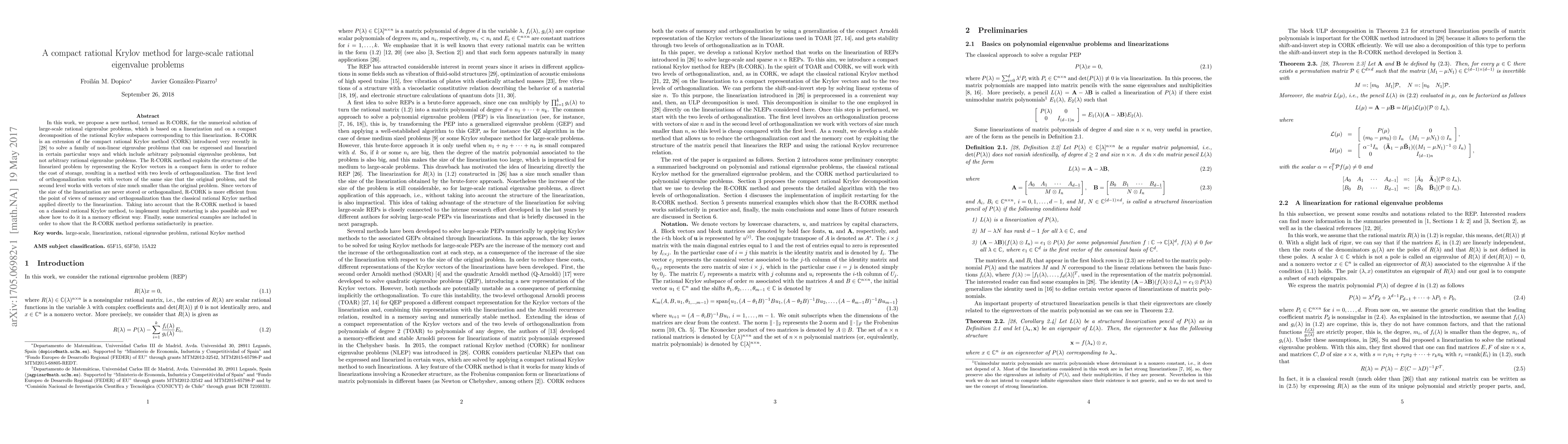 This paper proposes R-CORK, a compact rational Krylov method for solving large-scale rational eigenvalue problems. It extends the CORK method by introducing two levels of orthogonalization to reduce storage costs and improve efficiency, making it more effective than classical rational Krylov methods.