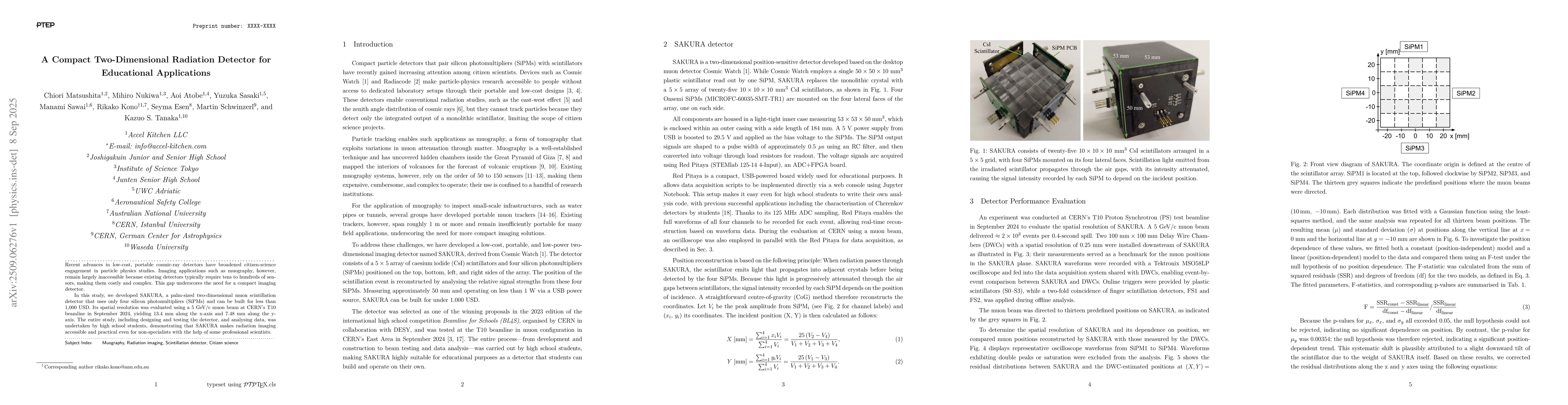 Recent advances in low-cost, portable cosmic-ray detectors have broadened citizen-science engagement in particle physics studies. Imaging applications such as muography, however, remain largely inaccessible because existing detectors typically require tens to hundreds of sensors, making them costly and complex. This gap underscores the need for a compact imaging detector. In this study, we developed SAKURA, a palm-sized two-dimensional muon scintillation detector that uses only four silicon photomultipliers (SiPMs) and can be built for less than 1,000 USD. Its spatial resolution was evaluated using a 5 GeV/c muon beam at CERN's T10 beamline in September 2024, yielding 13.4 mm along the x-axis and 7.48 mm along the y-axis. The entire study, including designing and testing the detector, and analysing data, was undertaken by high school students, demonstrating that SAKURA makes radiation imaging accessible and practical even for non-specialists with the help of some professional scientists.