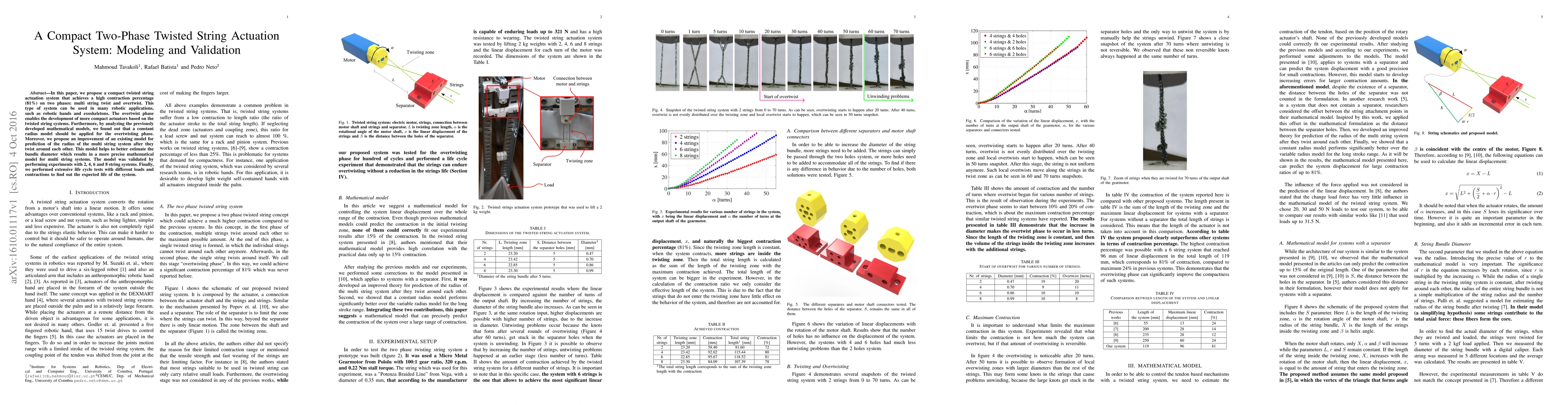 This paper introduces a compact two-phase twisted string actuation system achieving 81% contraction, suitable for robotic hands and exoskeletons. It improves existing models for predicting the radius of twisted strings and validates the model through experiments with various string configurations and life cycle tests.
