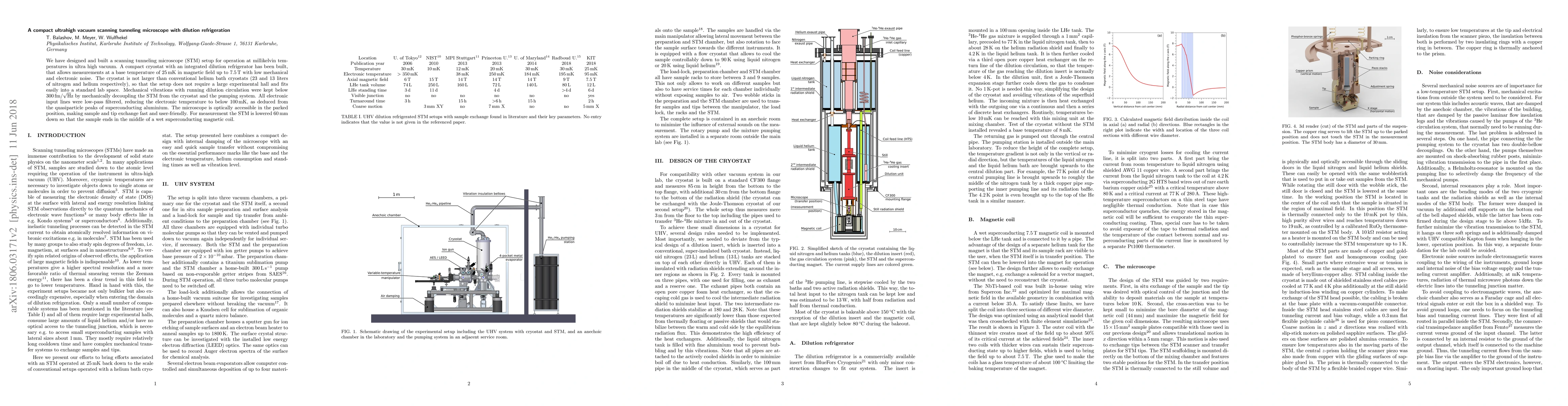 This paper describes a compact ultrahigh vacuum scanning tunneling microscope integrated with a dilution refrigerator, enabling millikelvin temperature measurements in ultrahigh vacuum. The cryostat design minimizes space requirements and mechanical noise, allowing for easy sample and tip exchange.