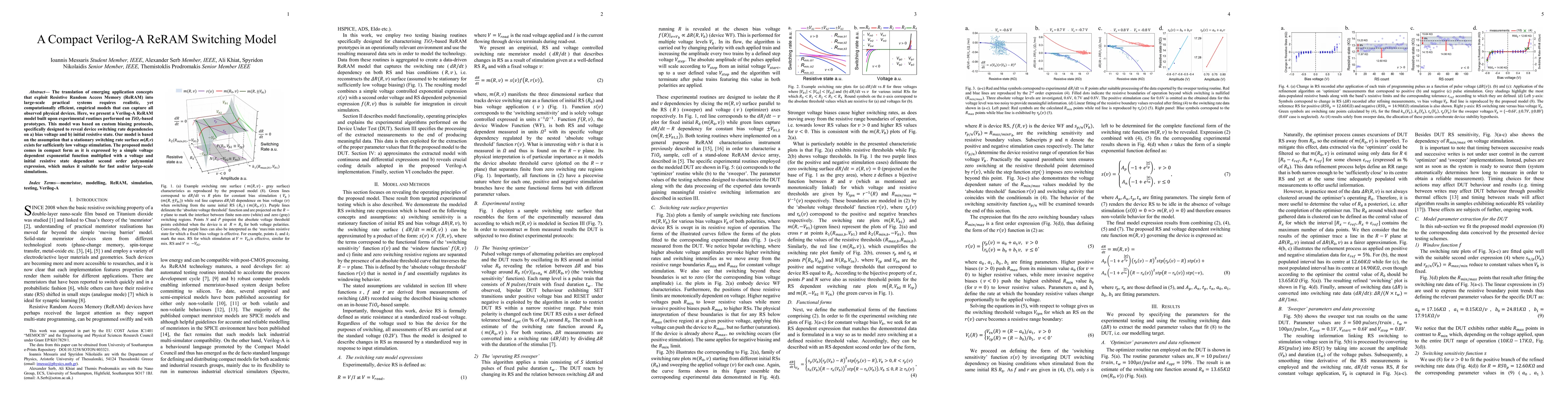 This paper presents a compact Verilog-A ReRAM model based on experimental data from TiOx-based prototypes, capturing device switching rate dependencies on bias voltage and initial resistive state. The model is efficient for large-scale simulations, expressed by a simple voltage-dependent exponential function and a polynomial expression.