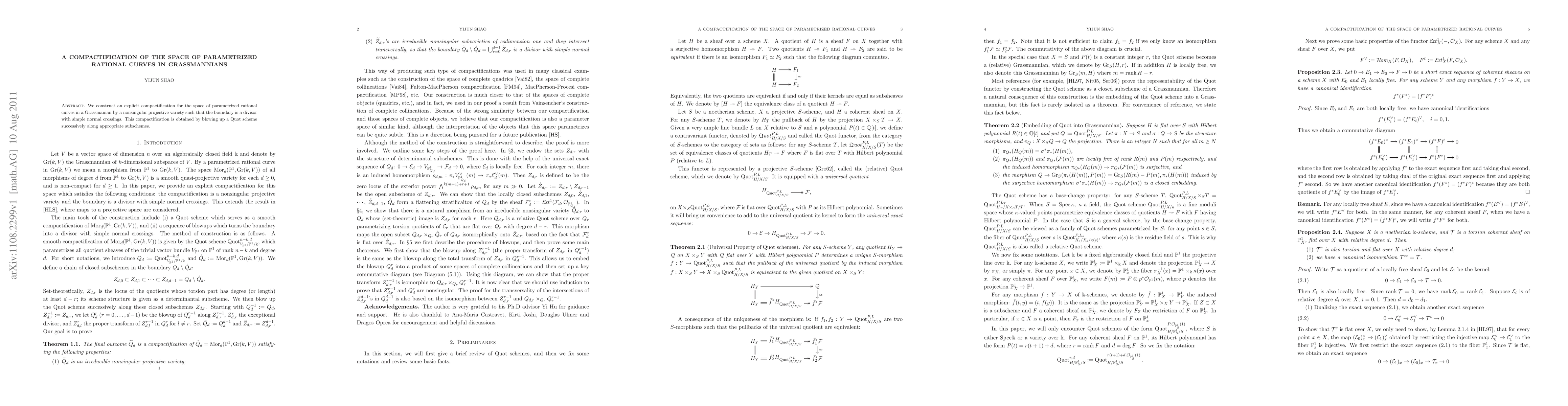 Summary: This paper constructs an explicit compactification for the space of parametrized rational curves in Grassmannians via a nonsingular projective variety with a simple normal crossings divisor boundary, achieved through successive blowing up of a Quot scheme along specific subschemes.
