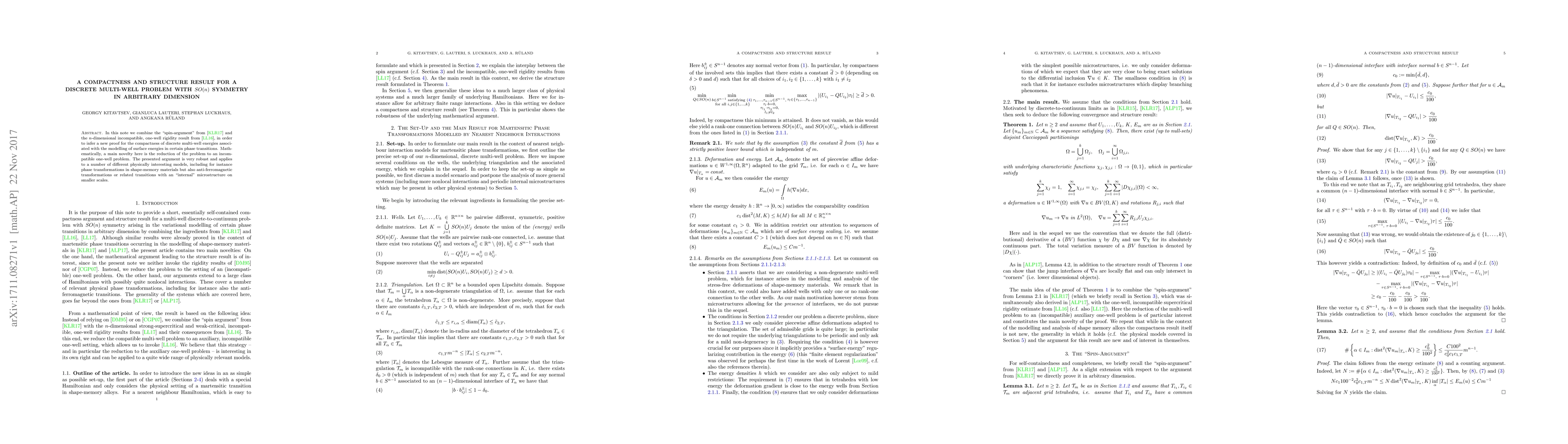 In this note we combine the "spin-argument" from [KLR15] and the $n$-dimensional incompatible, one-well rigidity result from [LL16], in order to infer a new proof for the compactness of discrete multi-well energies associated with the modelling of surface energies in certain phase transitions. Mathematically, a main novelty here is the reduction of the problem to an incompatible one-well problem. The presented argument is very robust and applies to a number of different physically interesting models, including for instance phase transformations in shape-memory materials but also anti-ferromagnetic transformations or related transitions with an "internal" microstructure on smaller scales.