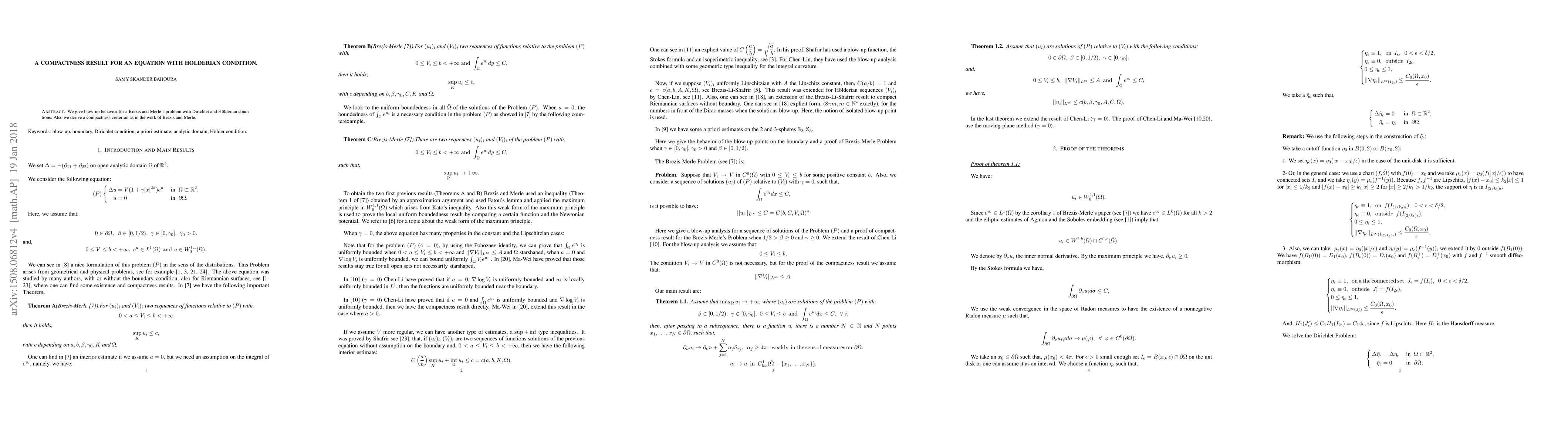 Summary: This paper conducts blow-up analysis for Brezis and Merle's problem under Dirichlet and Hölderian conditions, and establishes a compactness criterion to support the analysis.