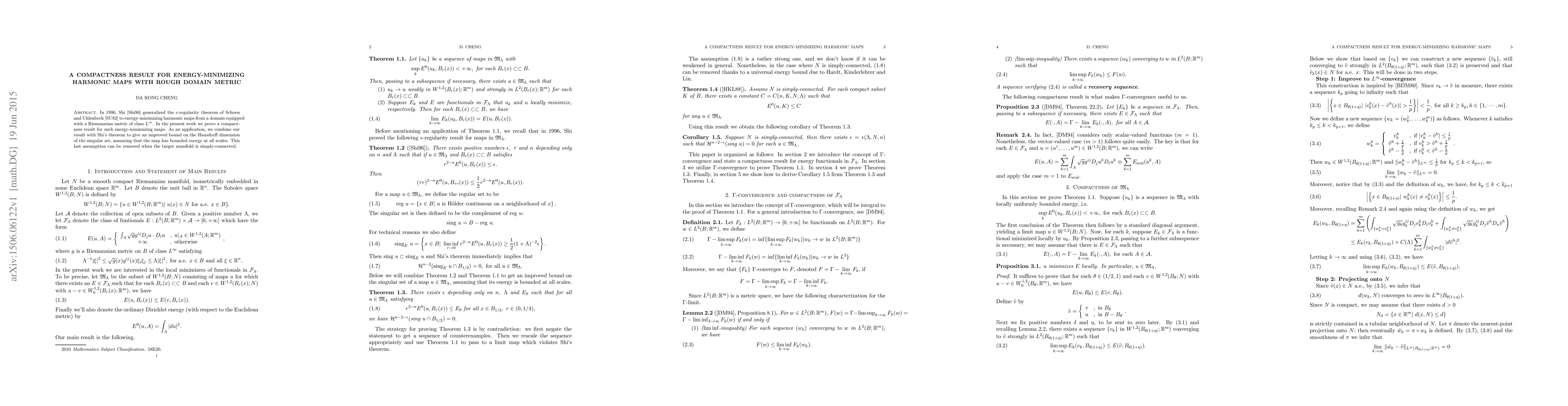 This paper proves a compactness result for energy-minimizing harmonic maps with a rough domain metric, extending Shi's epsilon-regularity theorem. It also improves the Hausdorff dimension bound of the singular set under certain energy conditions, with the requirement being relaxed for simply-connected target manifolds.