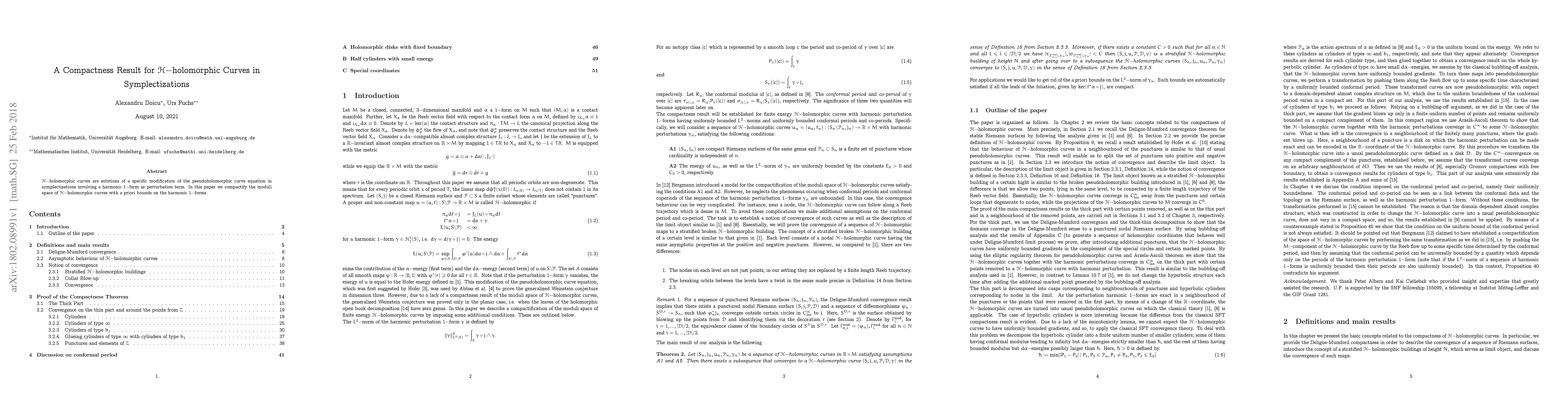 $\mathcal{H}-$holomorphic curves are solutions of a specific modification of the pseudoholomorphic curve equation in symplectizations involving a harmonic $1-$form as perturbation term. In this paper we compactify the moduli space of $\mathcal{H}-$holomorphic curves with a priori bounds on the harmonic $1-$forms.