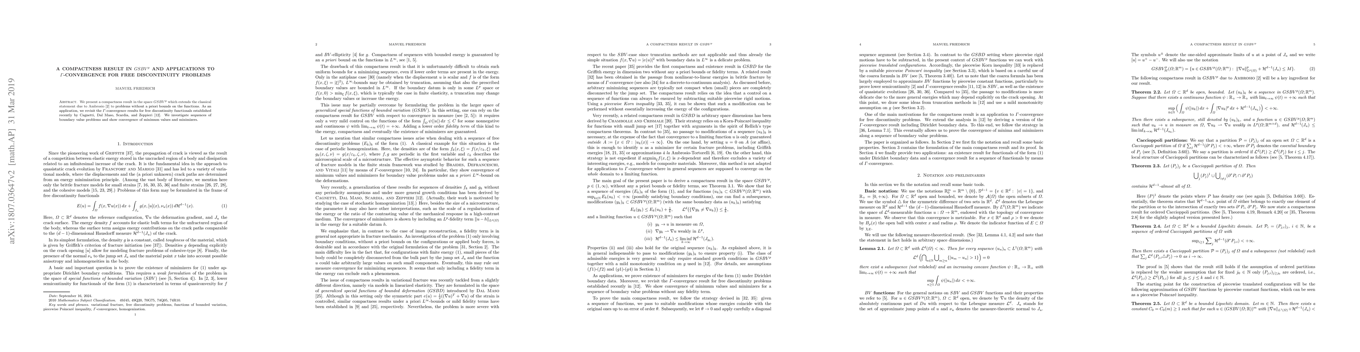 Summary: This paper extends a compactness result in the $GSBV^p$ space for problems without bounds on deformations and applies it to $\Gamma$-convergence in free discontinuity problems, demonstrating convergence of minimum values and minimizers for sequences of boundary value problems.