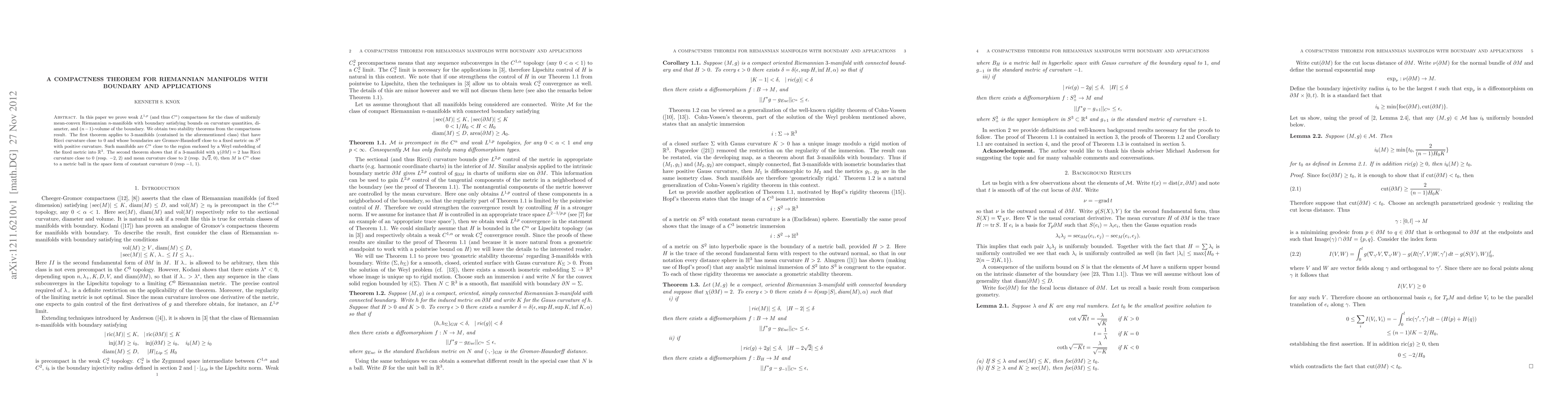 This paper proves weak L^{1,p} compactness for uniformly mean-convex Riemannian manifolds with boundary under specified curvature and geometric constraints. It derives two stability theorems, one for 3-manifolds with Ricci curvature near 0 and boundary close to a positively curved metric on S^2, and the other for 3-manifolds with Ricci curvature and mean curvature near specific values, showing closeness to metric balls in spaces of constant curvature.