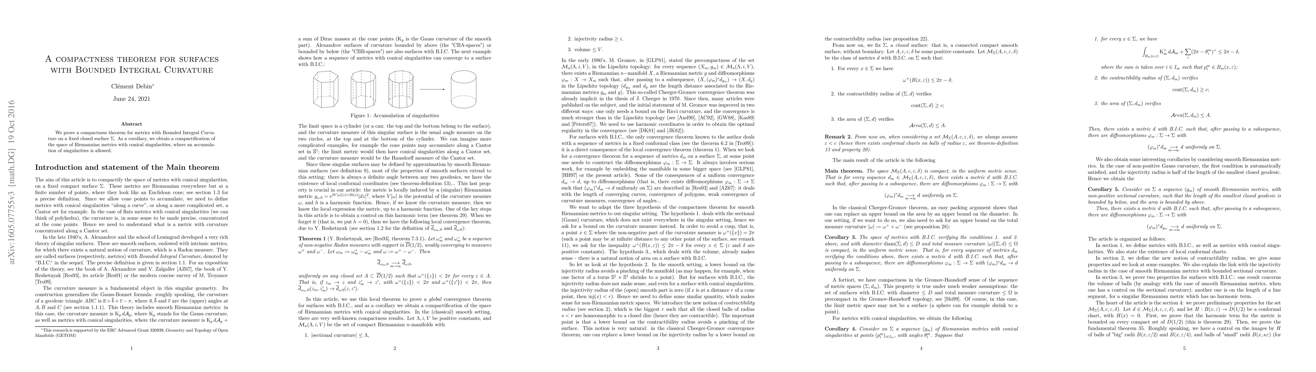 Researchers prove a compactness theorem for surfaces with bounded integral curvature, enabling a compactification of Riemannian metrics with conical singularities, allowing accumulation of singularities on a fixed closed surface.