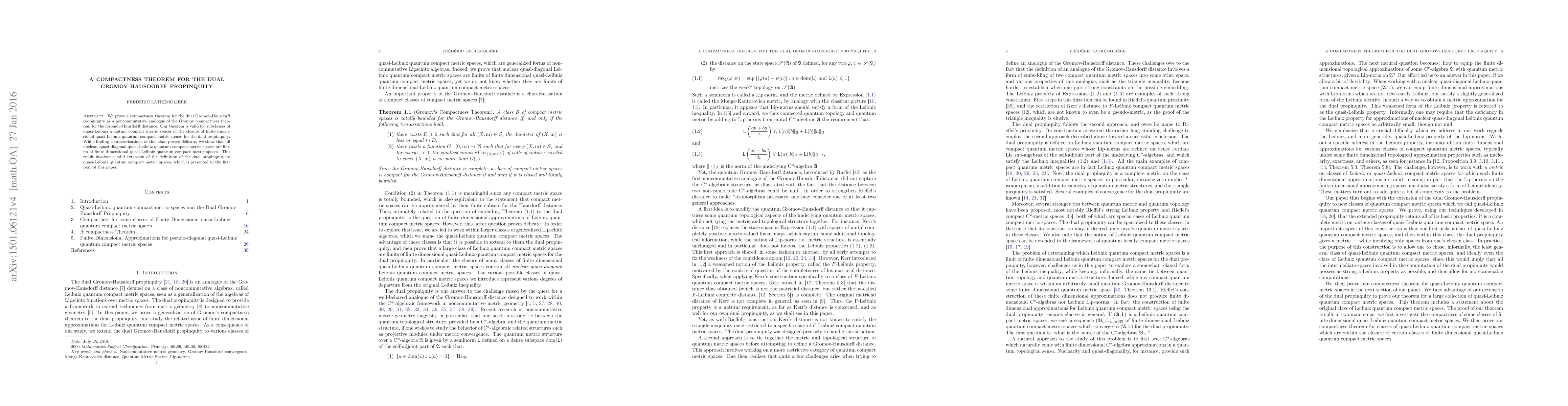 We prove a compactness theorem for the dual Gromov-Hausdorff propinquity as a noncommutative analogue of the Gromov compactness theorem for the Gromov-Hausdorff distance. Our theorem is valid for subclasses of quasi-Leibniz compact quantum metric spaces of the closure of finite dimensional quasi-Leibniz compact quantum metric spaces for the dual propinquity. While finding characterizations of this class proves delicate, we show that all nuclear, quasi-diagonal quasi-Leibniz compact quantum metric spaces are limits of finite dimensional quasi-Leibniz compact quantum metric spaces. This result involves a mild extension of the definition of the dual propinquity to quasi-Leibniz compact quantum metric spaces, which is presented in the first part of this paper.