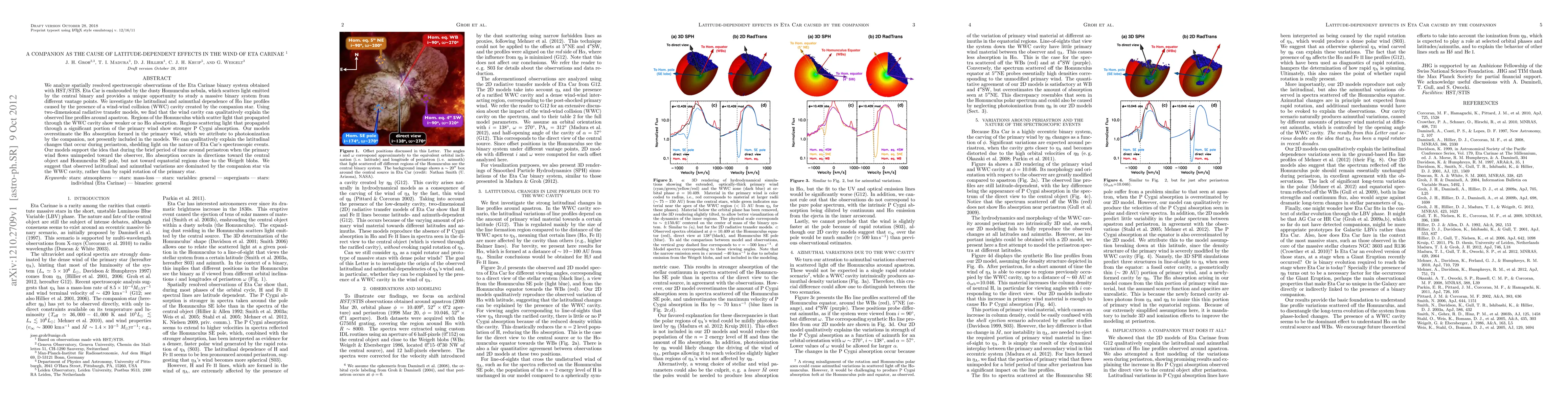 This study uses HST/STIS observations to analyze the wind dynamics of Eta Carinae, revealing that the wind-wind collision cavity created by the companion star explains the latitudinal and azimuthal variations in H$\alpha$ line profiles. The findings suggest that the companion star's influence, rather than the primary star's rotation, dominates the observed spectroscopic events.