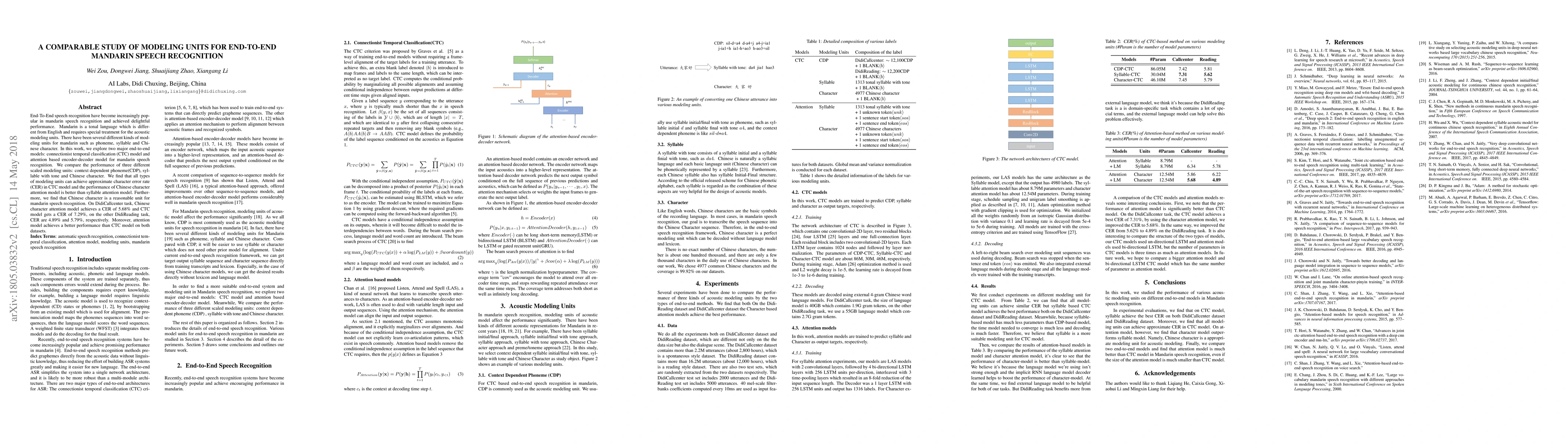 This study compares end-to-end Mandarin speech recognition models using CTC and attention-based encoder-decoder, focusing on three modeling units: context dependent phoneme, syllable with tone, and Chinese character. Results show Chinese character attention model outperforms others, achieving lower character error rates on DidiCallcenter and DidiReading tasks, and demonstrating that Chinese character is a reasonable unit for Mandarin speech recognition.