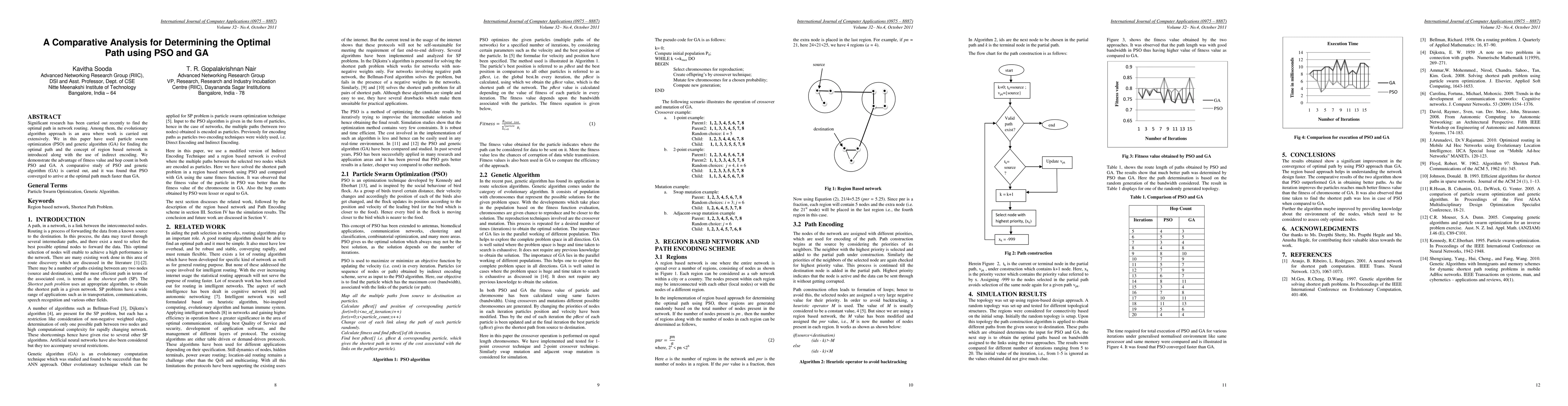 This paper compares particle swarm optimization (PSO) and genetic algorithm (GA) for finding optimal network routing paths, introducing a region-based network with indirect encoding. PSO was found to converge faster than GA, demonstrating its advantage in achieving optimal paths.