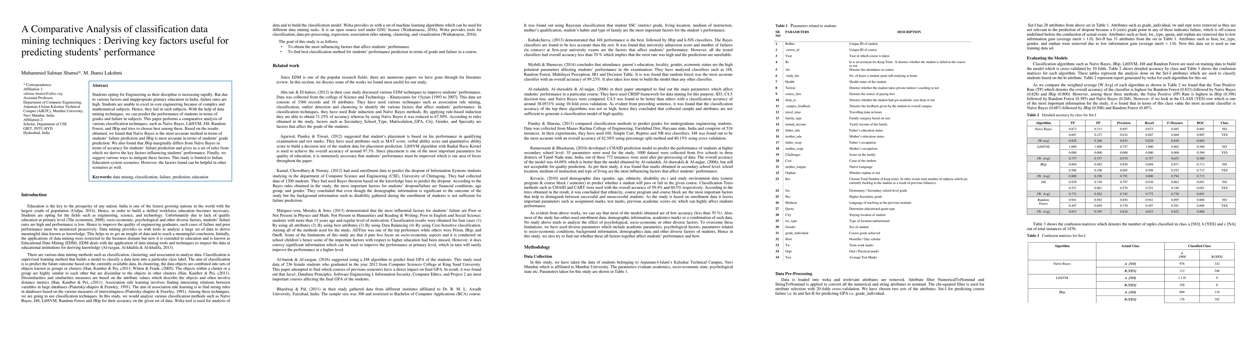 This paper compares various classification data mining techniques to predict engineering students' performance in India, finding that Naive Bayes is most accurate for failure prediction, while JRip is best for grade prediction and provides key factors influencing performance. The study suggests ways to mitigate these factors, though it's specific to the Indian education system.