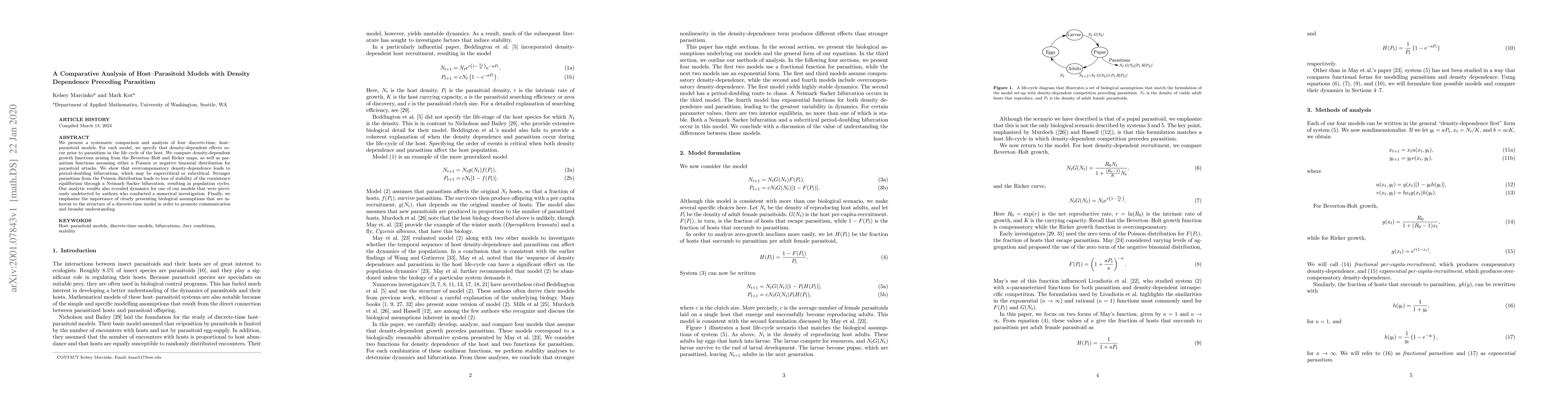 We present a systematic comparison and analysis of four discrete-time, host--parasitoid models. For each model, we specify that density-dependent effects occur prior to parasitism in the life cycle of the host. We compare density-dependent growth functions arising from the Beverton--Holt and Ricker maps, as well as parasitism functions assuming either a Poisson or negative binomial distribution for parasitoid attacks. We show that overcompensatory density-dependence leads to period-doubling bifurcations, which may be supercritical or subcritical. Stronger parasitism from the Poisson distribution leads to loss of stability of the coexistence equilibrium through a Neimark--Sacker bifurcation, resulting in population cycles. Our analytic results also revealed dynamics for one of our models that were previously undetected by authors who conducted a numerical investigation. Finally, we emphasize the importance of clearly presenting biological assumptions that are inherent to the structure of a discrete-time model in order to promote communication and broader understanding.