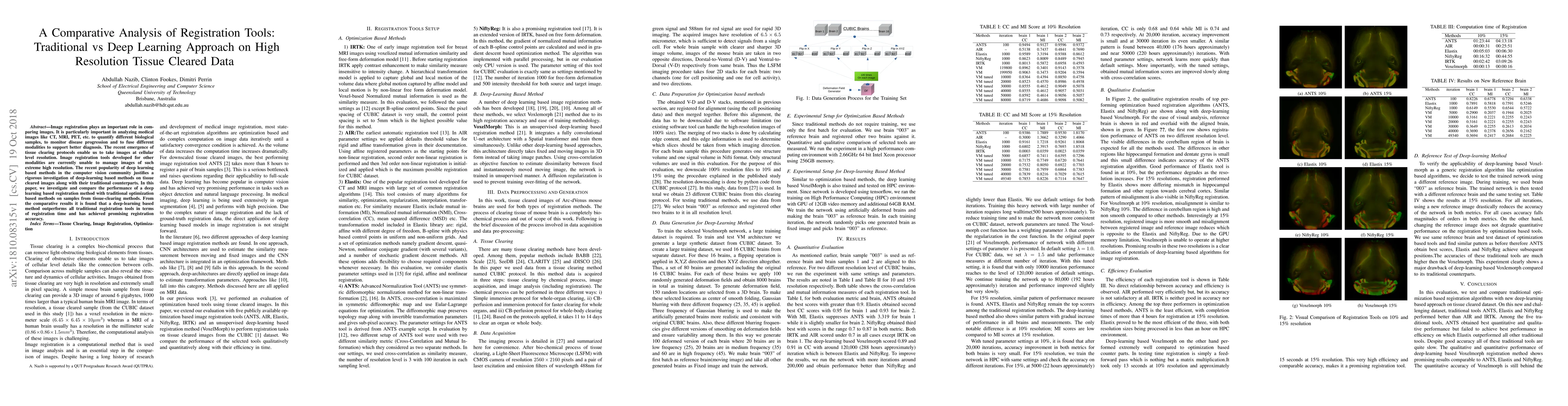 A deep learning method outperforms traditional registration tools in terms of registration time and achieves promising accuracy on high-resolution tissue-cleared images.