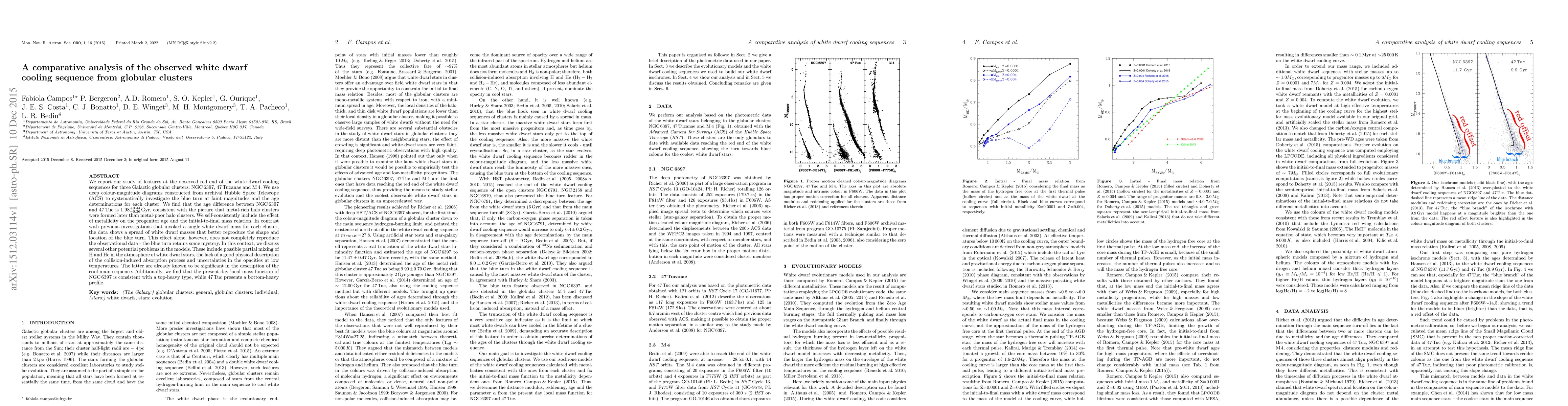 We report our study of features at the observed red end of the white dwarf cooling sequences for three Galactic globular clusters: NGC\,6397, 47\,Tucanae and M\,4. We use deep colour-magnitude diagrams constructed from archival Hubble Space Telescope (ACS) to systematically investigate the blue turn at faint magnitudes and the age determinations for each cluster. We find that the age difference between NGC\,6397 and 47\,Tuc is 1.98$^{+0.44}_{-0.26}$\,Gyr, consistent with the picture that metal-rich halo clusters were formed later than metal-poor halo clusters. We self-consistently include the effect of metallicity on the progenitor age and the initial-to-final mass relation. In contrast with previous investigations that invoked a single white dwarf mass for each cluster, the data shows a spread of white dwarf masses that better reproduce the shape and location of the blue turn. This effect alone, however, does not completely reproduce the observational data - the blue turn retains some mystery. In this context, we discuss several other potential problems in the models. These include possible partial mixing of H and He in the atmosphere of white dwarf stars, the lack of a good physical description of the collision-induced absorption process and uncertainties in the opacities at low temperatures. The latter are already known to be significant in the description of the cool main sequence. Additionally, we find that the present day local mass function of NGC\,6397 is consistent with a top-heavy type, while 47\,Tuc presents a bottom-heavy profile.