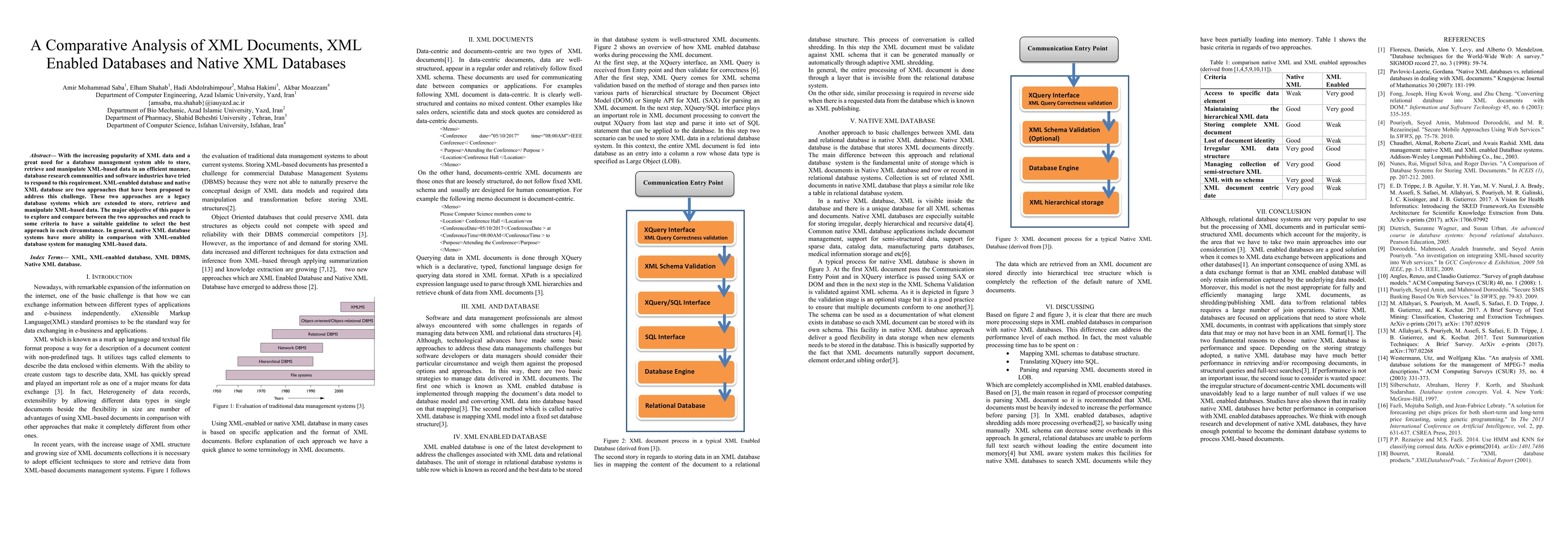 This paper compares XML-enabled databases, which extend traditional database systems to handle XML data, with native XML databases, which are specifically designed for XML. It concludes that native XML databases generally offer better performance and functionality for managing XML-based data.