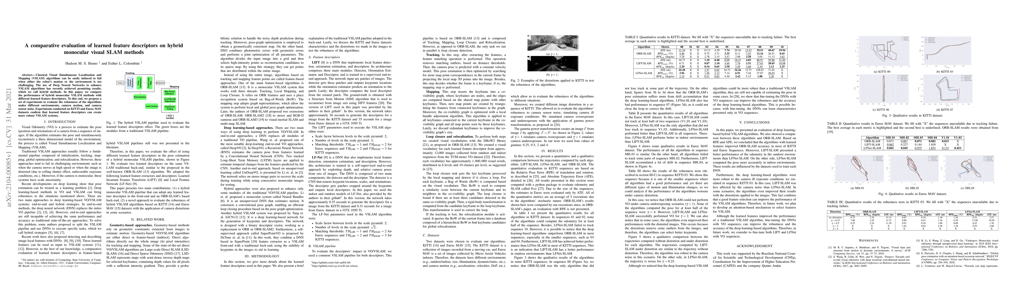 This paper evaluates hybrid monocular visual SLAM methods with different learned feature descriptors on KITTI and Euroc MAV datasets, finding that learned feature descriptors create more robust VSLAM systems under various environments and camera conditions.