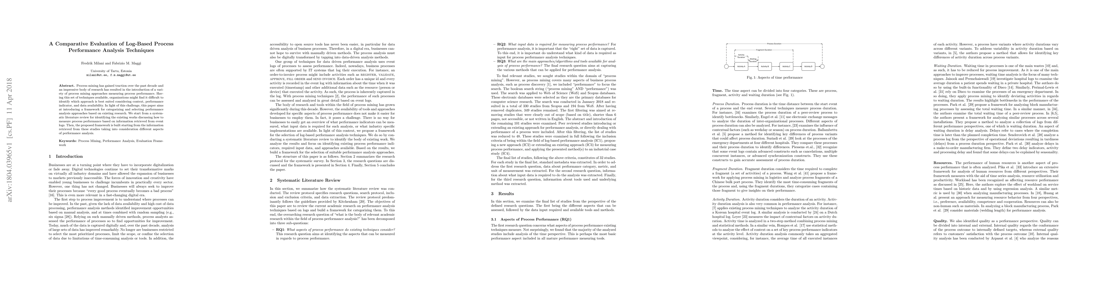 This paper introduces a framework for categorizing process performance analysis techniques based on context, performance indicators, and data availability. It aims to help organizations choose the best approach for measuring process performance.