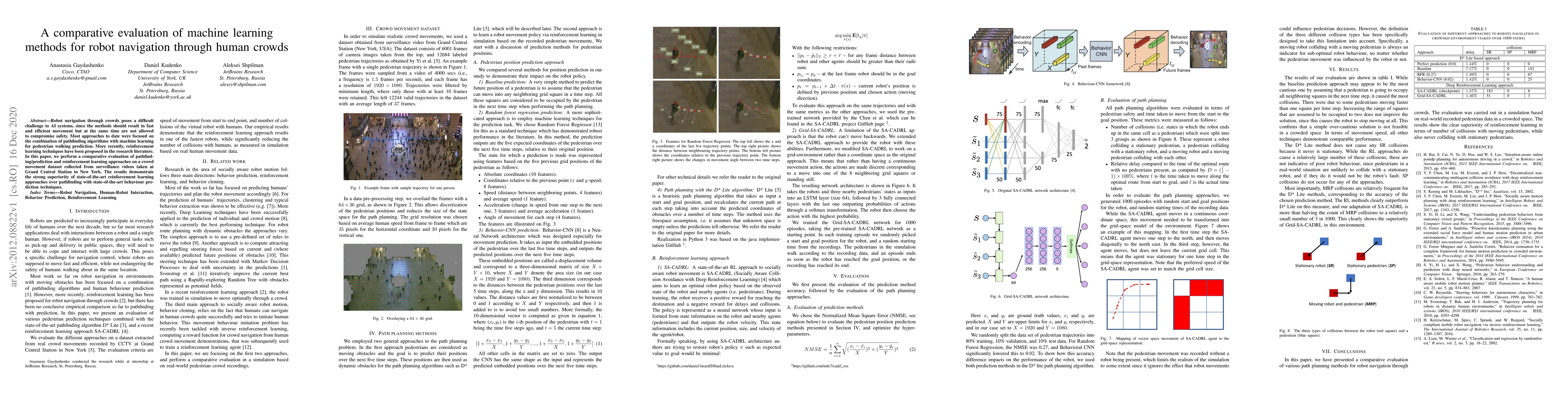 This paper evaluates machine learning methods for robot navigation in crowded environments, comparing pathfinding algorithms with reinforcement learning techniques. Results from a dataset collected at Grand Central Station show that reinforcement learning outperforms traditional methods in efficiency and safety.