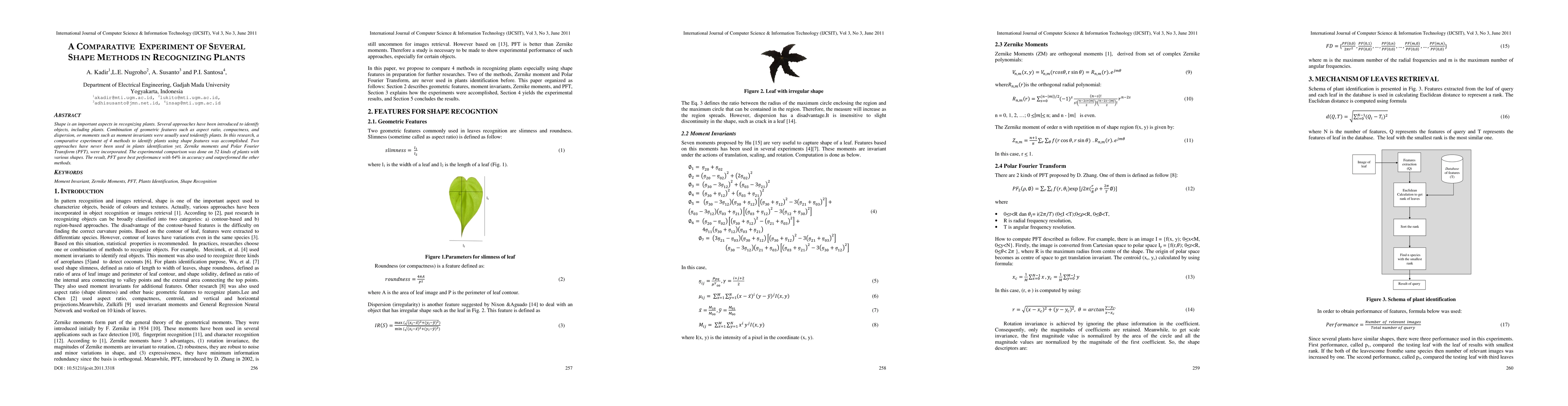 A comparative experiment using 4 shape methods (Zernike moments and Polar Fourier Transform) identified plants with 64% accuracy, outperforming traditional approaches in recognizing plant shapes.