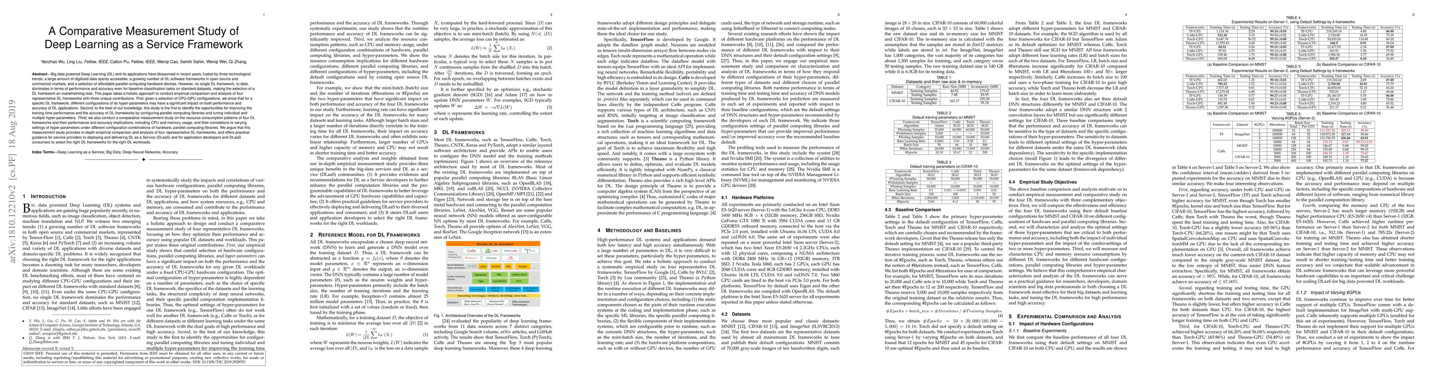 This paper conducts a comparative measurement study of four deep learning frameworks, analyzing their performance, accuracy, and resource consumption under various configurations. It identifies opportunities for optimizing training time and accuracy through hyper-parameter tuning and parallel computing library configuration, providing practical insights for deploying Deep Learning as a Service (DLaaS).