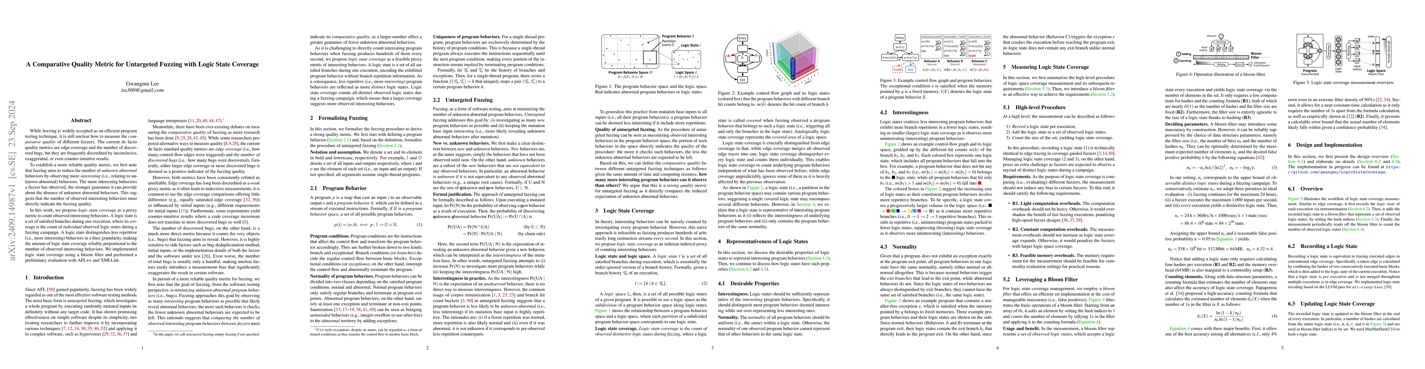 This paper proposes logic state coverage as a new quality metric for untargeted fuzzing, suggesting it counts observed interesting behaviors more reliably than traditional metrics like edge coverage or bug discovery. Logic state coverage measures the number of distinct sets of satisfied branches during fuzzing, implemented via a bloom filter, and demonstrated with AFL++ and XMLLint.