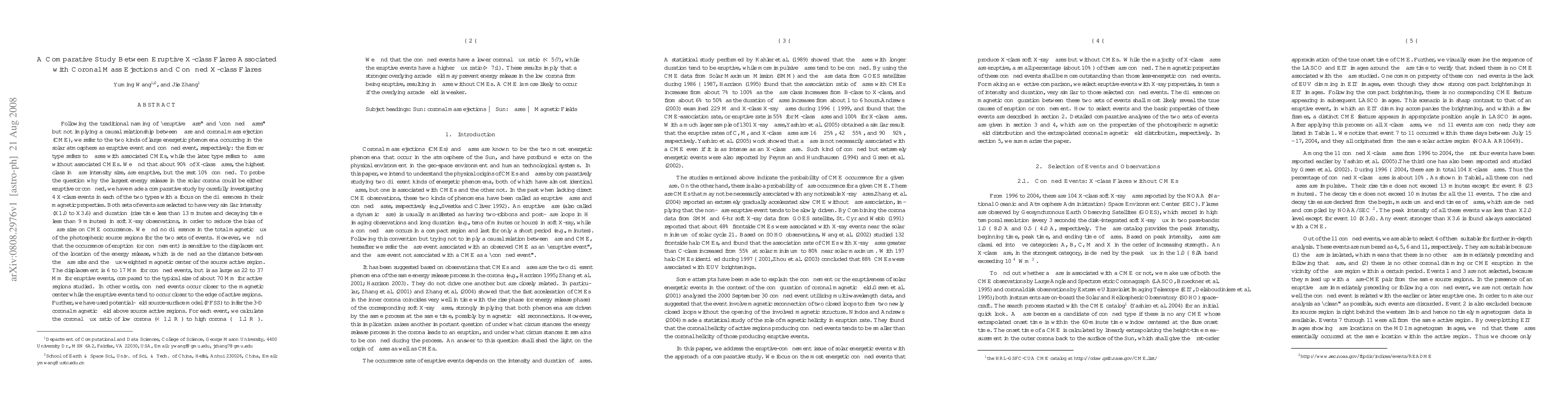 This study compares eruptive and confined X-class solar flares, finding that 90% are eruptive with associated coronal mass ejections (CMEs) while 10% are confined without CMEs. The analysis reveals that eruptive flares occur farther from the magnetic center of active regions and have a higher flux ratio of low to high corona, suggesting a stronger overlying arcade field may confine flares without CMEs.