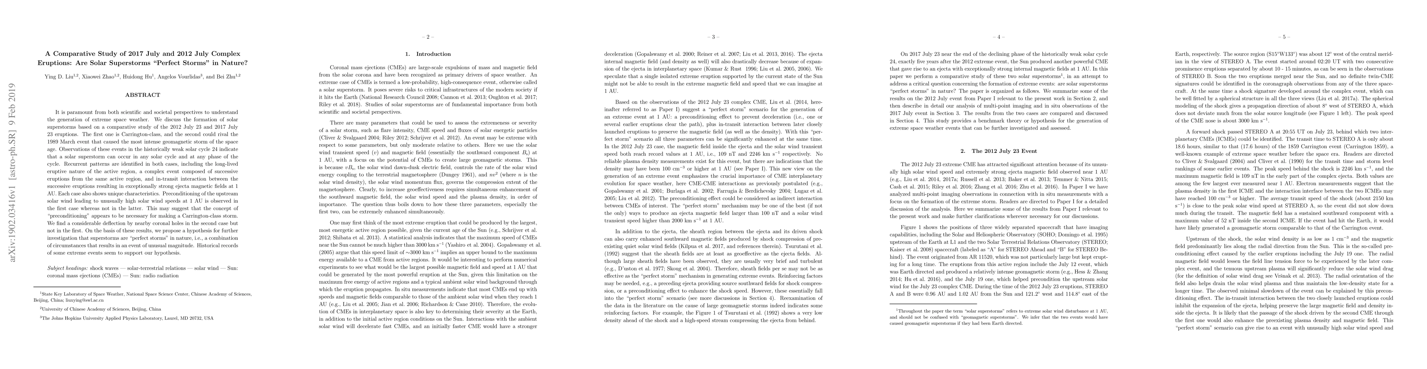 This study compares the 2012 and 2017 solar superstorm eruptions to understand extreme space weather generation, identifying recurrent patterns and unique characteristics. It proposes that solar superstorms are "perfect storms," a combination of circumstances leading to unusually intense events.