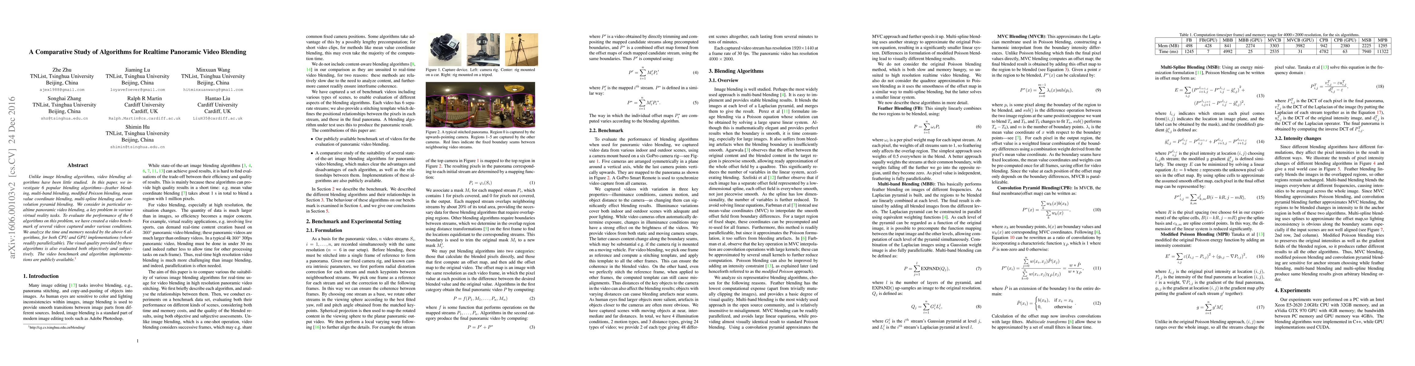 This study compares six popular algorithms for real-time panoramic video blending, assessing their performance, quality, and resource usage on CPU and GPU. The findings help identify effective methods for virtual reality applications, with a publicly available benchmark and implementations.