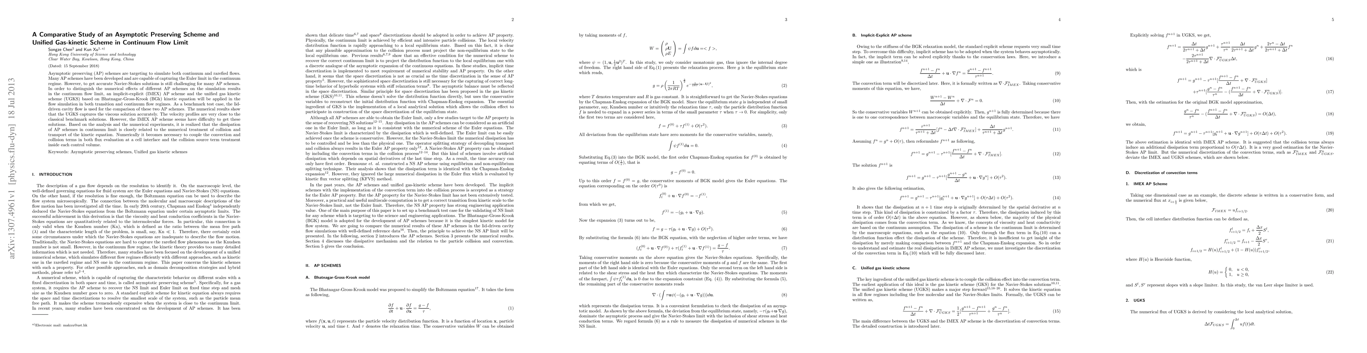This paper compares an implicit-explicit asymptotic preserving scheme with the unified gas-kinetic scheme for continuum flow simulations. The unified gas kinetic scheme accurately captures Navier-Stokes solutions, while the asymptotic preserving scheme struggles, highlighting the importance of coupling convection and collision terms in continuum simulations.