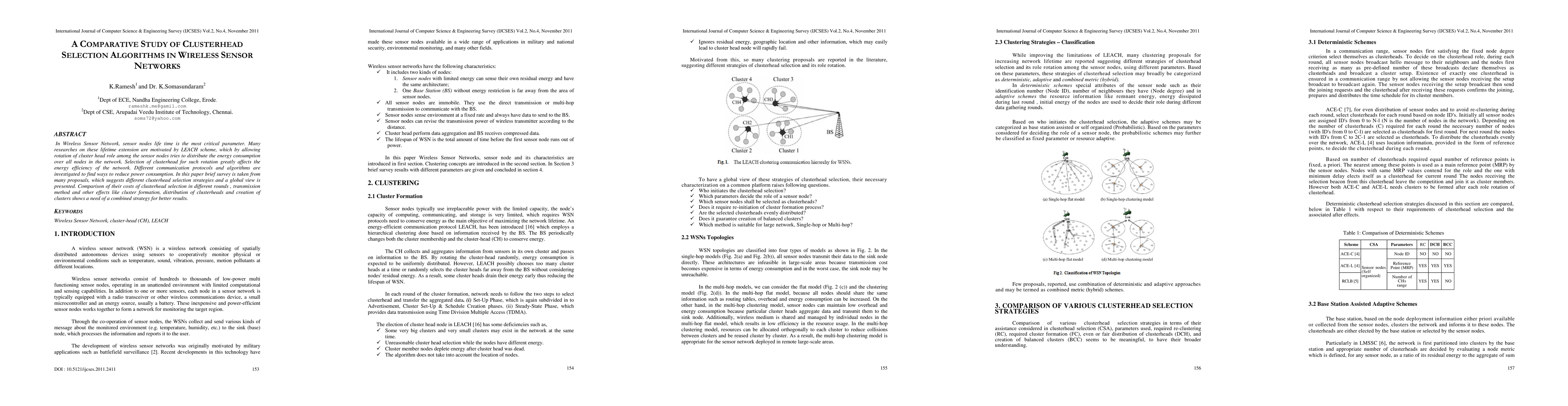 This paper surveys various clusterhead selection algorithms in wireless sensor networks, emphasizing their impact on energy efficiency and network lifetime. It concludes that a combined strategy may yield better results than individual approaches by balancing cluster formation, distribution, and energy consumption.