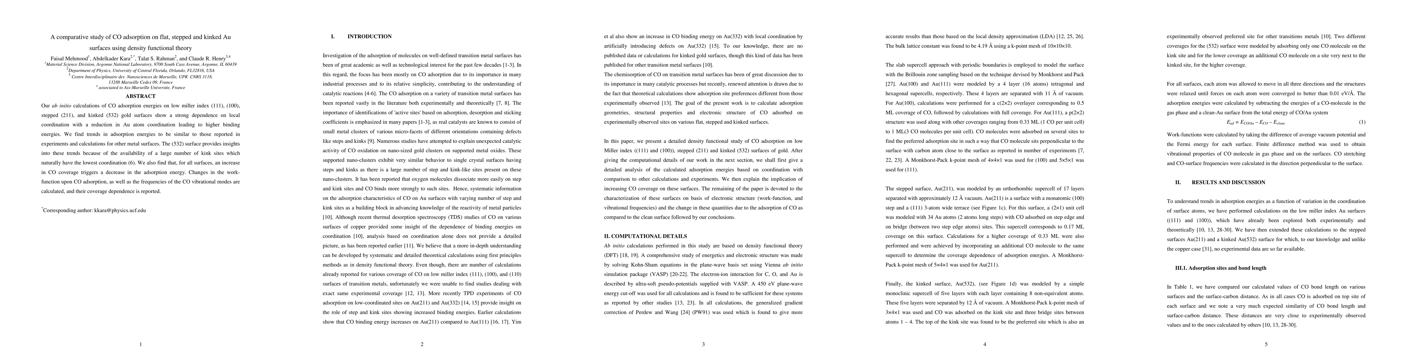 This study uses density functional theory to compare CO adsorption on various gold surfaces, revealing that adsorption energies are strongly influenced by local coordination, with lower coordination leading to higher binding energies. The (532) kinked surface, with many low-coordination sites, provides significant insights into these trends, and increased CO coverage reduces adsorption energy.
