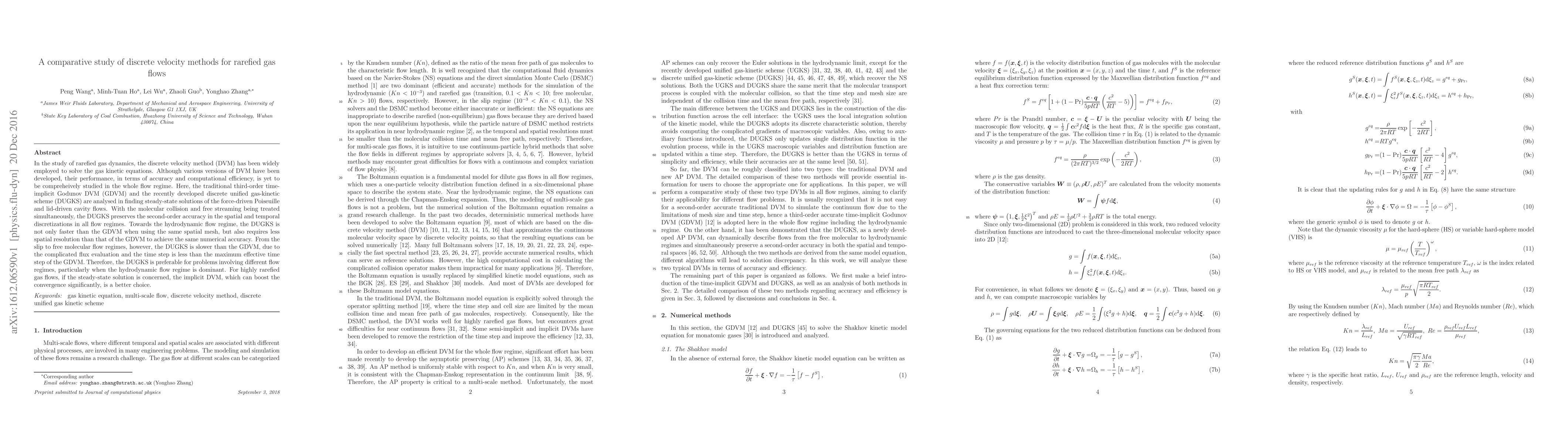This paper compares the performance of the traditional Godunov DVM and the DUGKS in solving rarefied gas flows, finding that DUGKS is more efficient in hydrodynamic regimes but less so in highly rarefied regimes. The DUGKS maintains second-order accuracy across all flow regimes, while GDVM is faster in free molecular flow but requires higher resolution for similar accuracy.