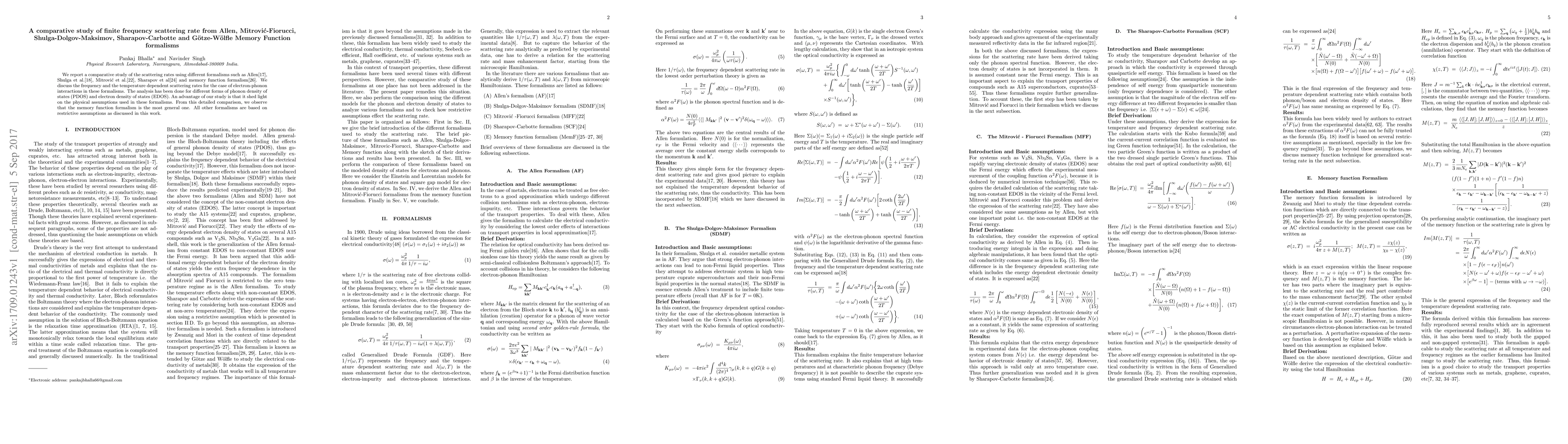 This paper compares scattering rates from various formalisms for electron-phonon interactions, highlighting the frequency and temperature dependencies. It finds that the memory function formalism is the most general, while others rely on restrictive assumptions.